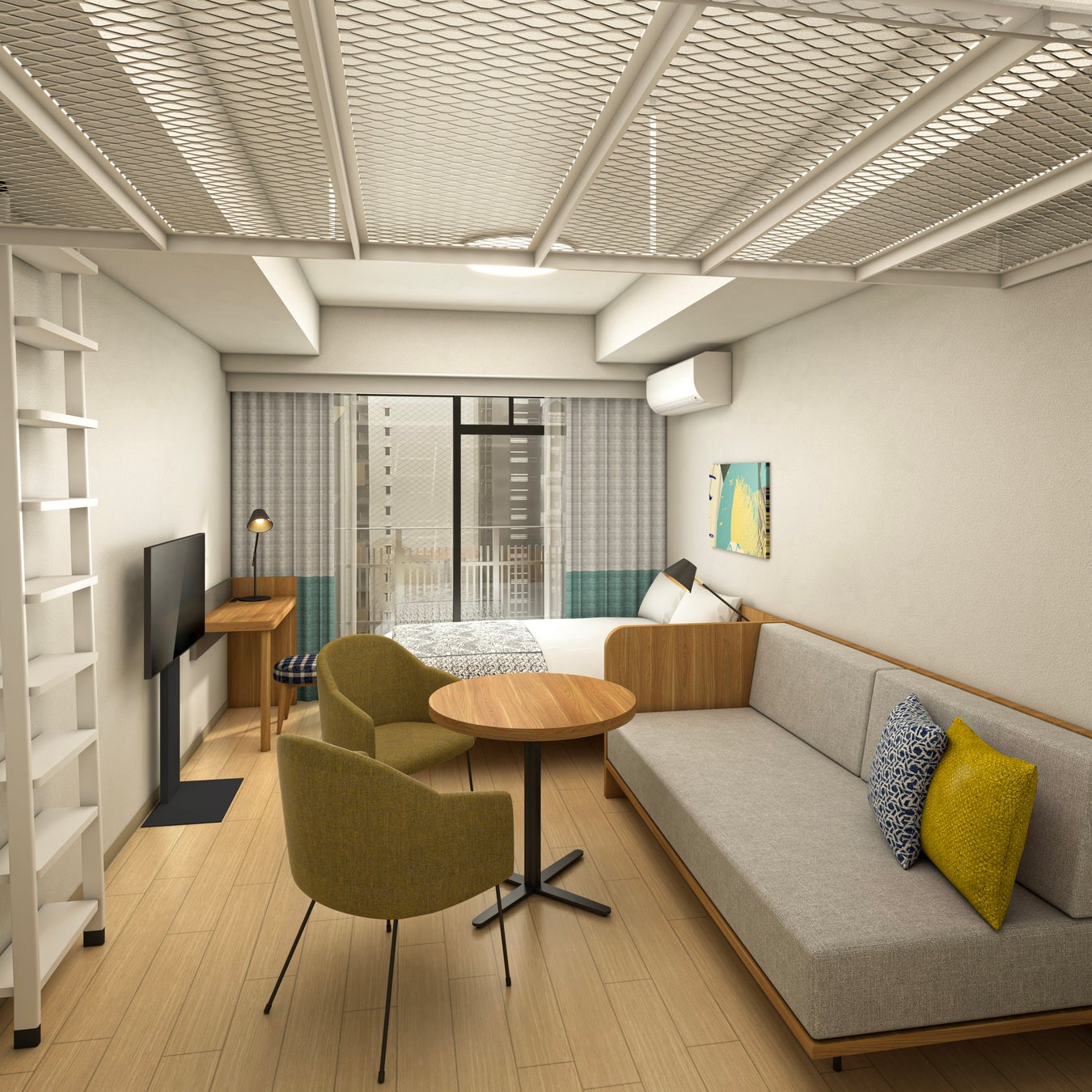 エリア初!2泊からの連泊特化型ホテル。より暮らしに近いアパートメントスタイルを提案。