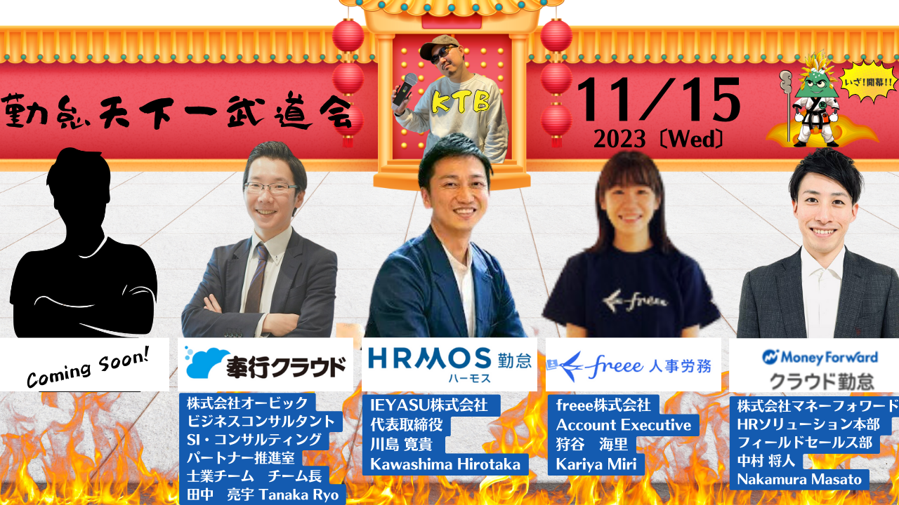 トップ営業(社長も含む)が早押し3分プレゼンで猛烈アピールをする『勤怠天下一武道会』を開催いたします。