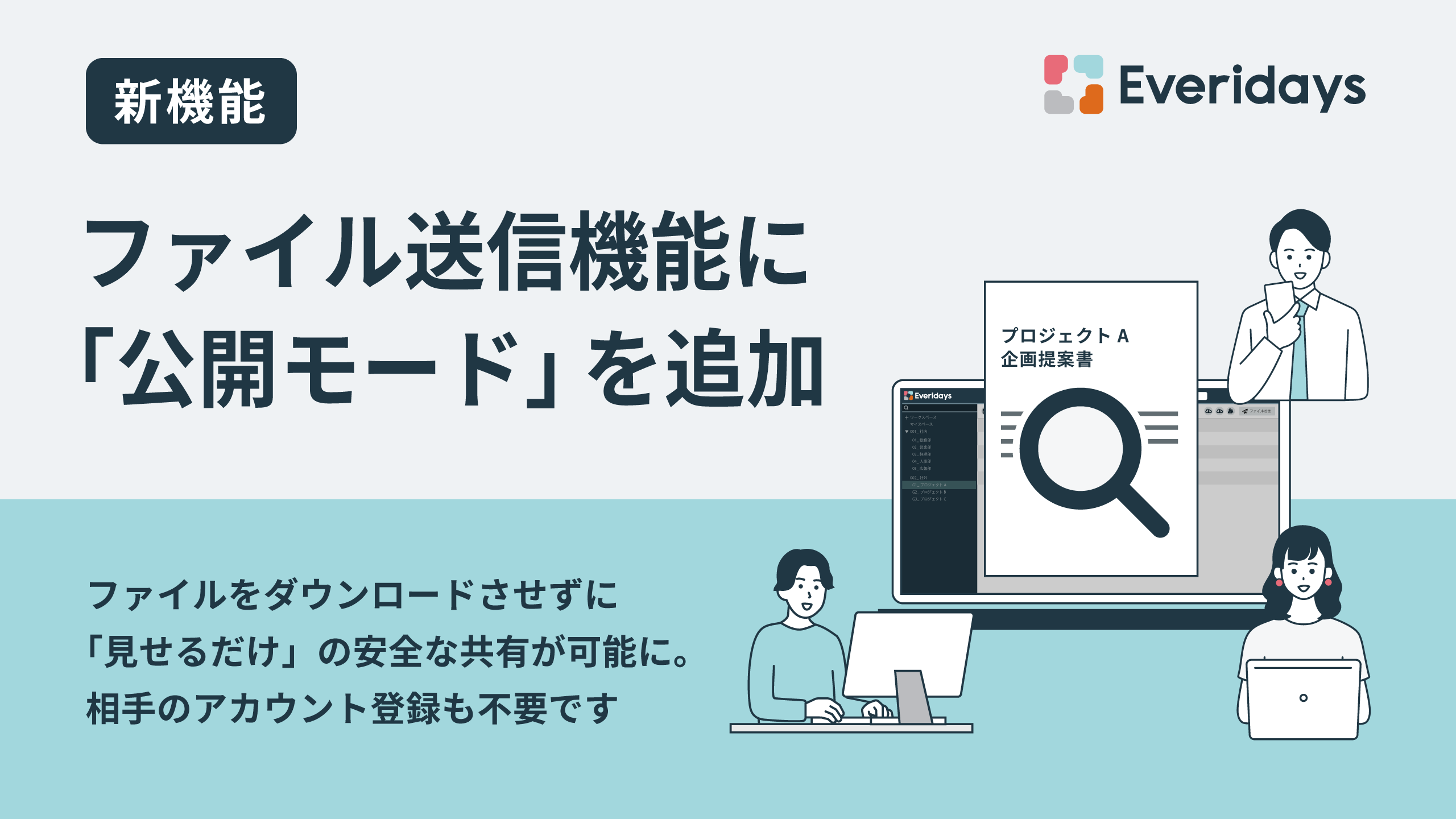 法人向けクラウドストレージ「Everidays」が、ファイル送信機能に「公開モード」を追加