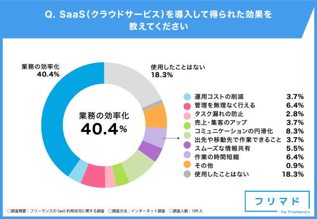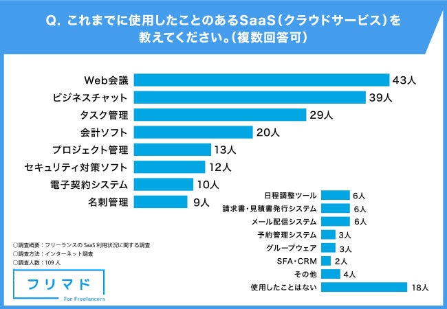 そこで今回、フリーランス向け情報メディア『フリマド』(https://mobilinkinfinity.com/)と共同で、全国のフリーランス109名を対象に、「フリーランスのSaaS利用状況」に関するアンケートを実施しました。