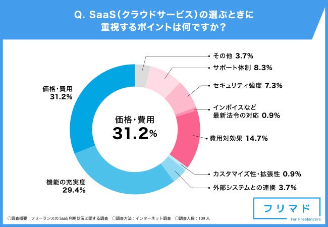 『価格・費用』が31.2%、『機能の充実度』が29.4%と3割前後を占める結果となりました。