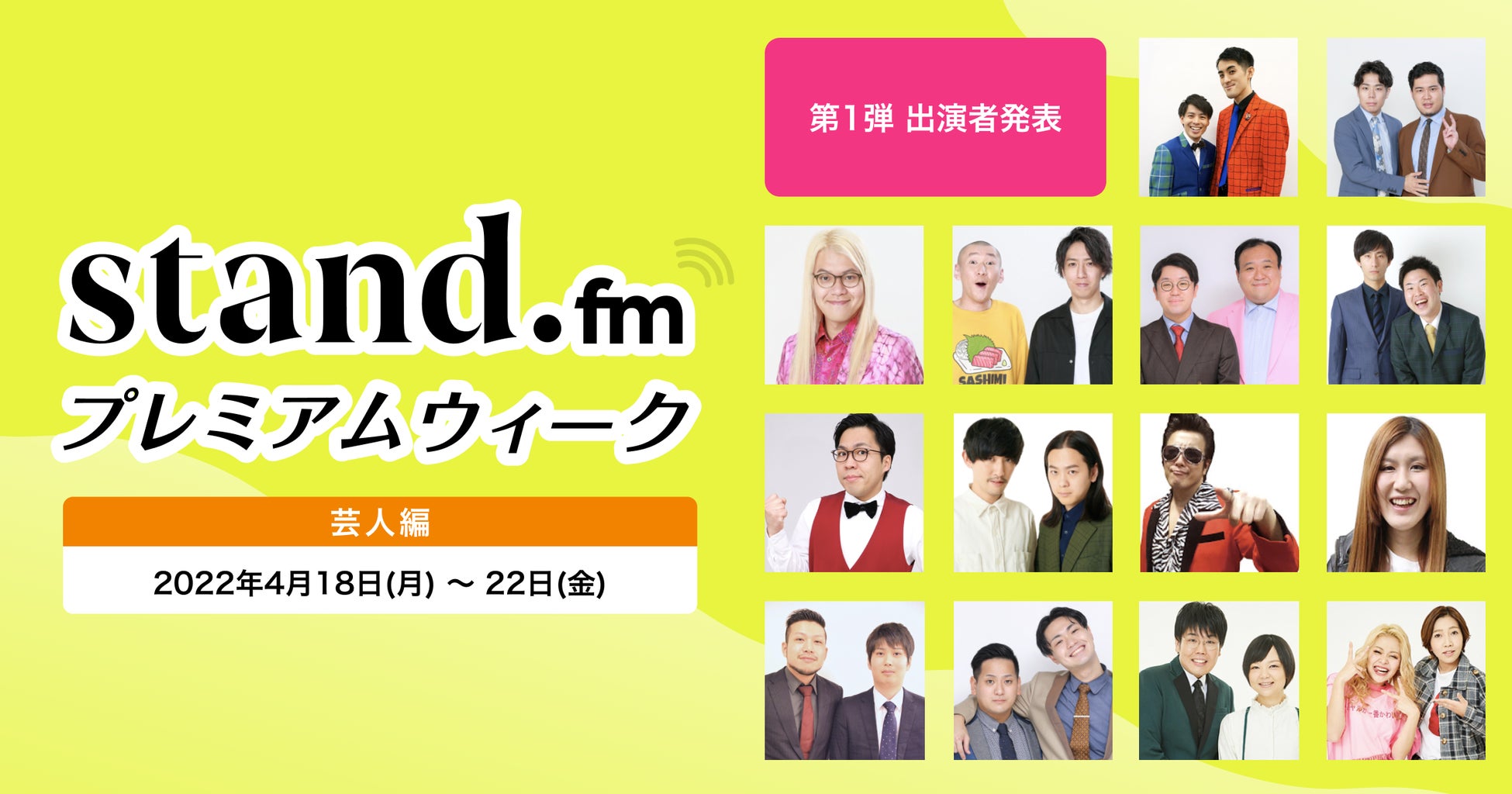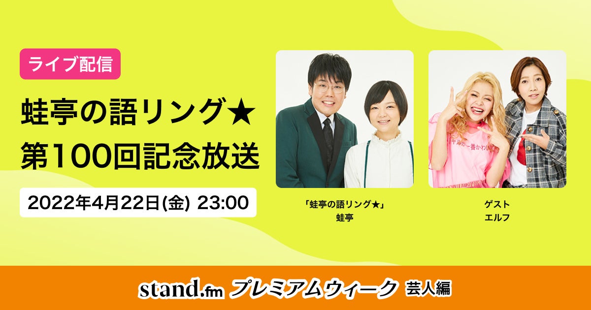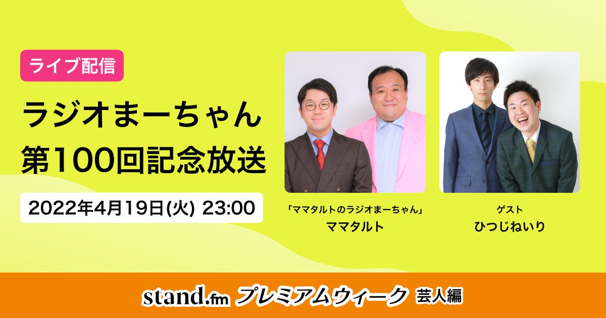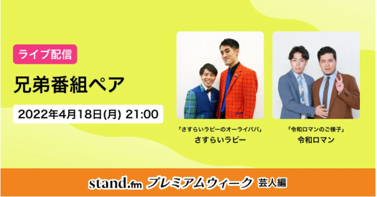 音声配信プラットフォームstand.fm、人気チャンネルのスペシャル企画をお届けする「stand.fmプレミアムウィーク」の開催が決定!