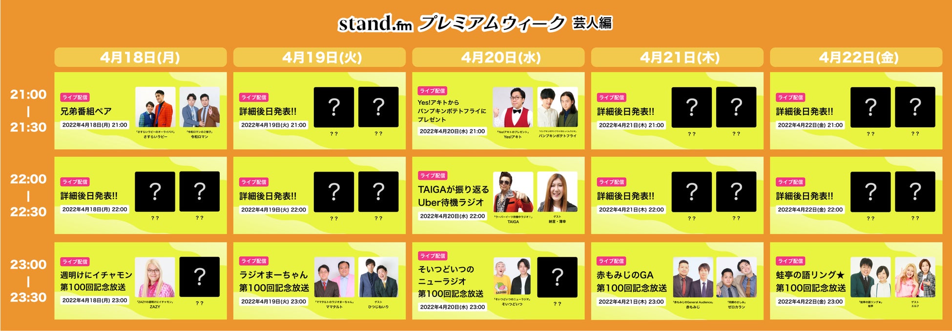 ・タイムテーブル:https://contents.stand.fm/premium_week/001
