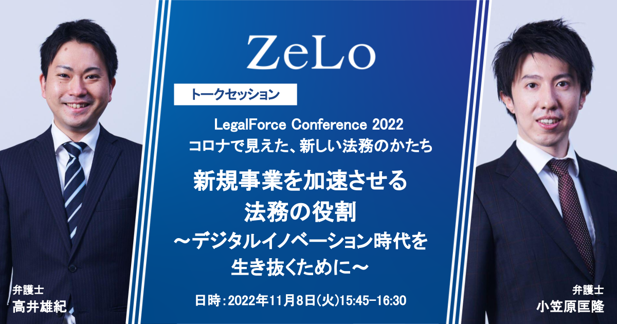 法律事務所ZeLoは、株式会社LegalForceが主催する『LegalForce Conference 2022 コロナで見えた、新しい法務のかたち』に株式会社モバイルファクトリー須藤 崇志氏とともに登壇します。