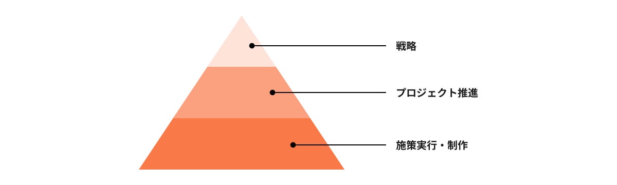 そこで今回は、戦略立案・プロジェクト推進・品質担保など、マーケティングに欠かせないミドル層不在問題にフォーカスし、足りないピースを体制ごと提供するサービスを開発することにしました。