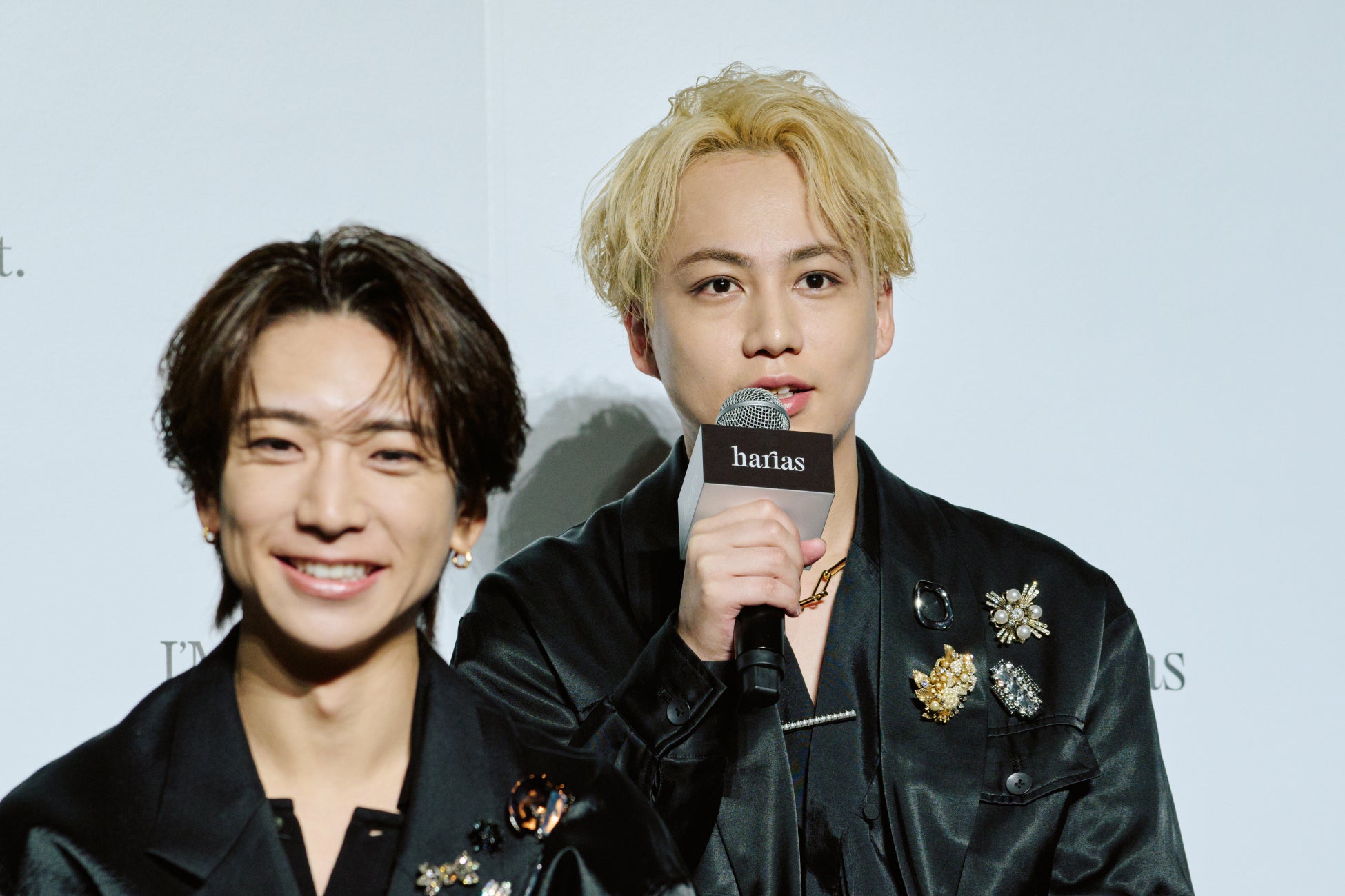 松井さんは、実際に日頃HARIASの商品を使っていることを明かし、舞台やライブでのエピソードも交えながら、「IMP.のライブや舞台では熱量を出すハードな演目も多いですが、汗にも負けないようなキープ力は特に意識しています。HARIASのキープミストも愛用しており、崩れないメイクを心掛けています。」と商品の魅力についてもご紹介いただきました。椿さんは、「乾燥する冬の季節でもライブでメイクをする機会が非常に多いので、その中でも肌への思いやりを大切にしていて、HARIASの商品のようにメイクをしながらお肌のケアもできるようなアイテムには特にこだわっています。」と肌ケアへのこだわり、そしてプロフェッショナルとしての意識の高さを見せました。