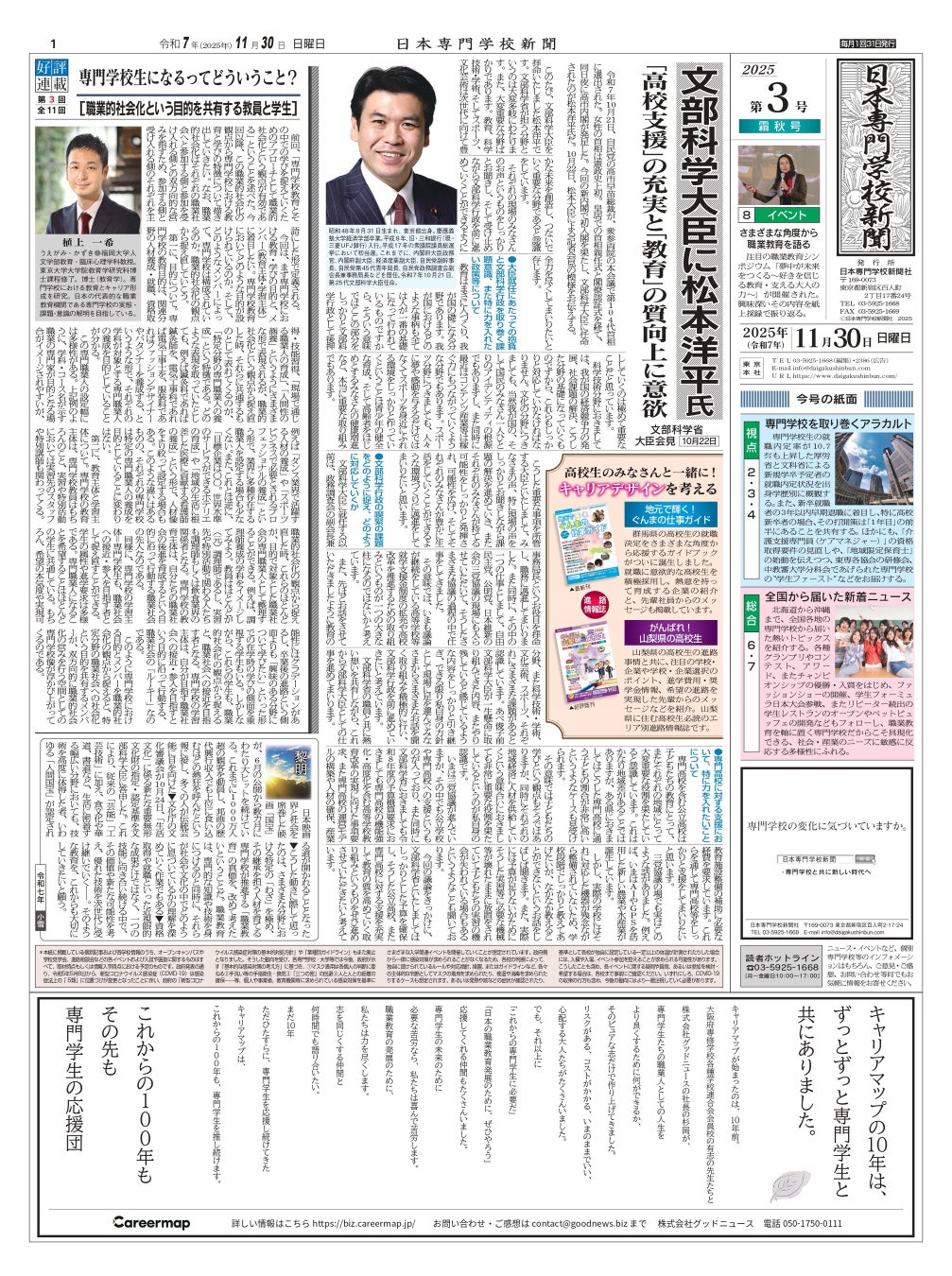 【最新号】日本専門学校新聞 3号発行