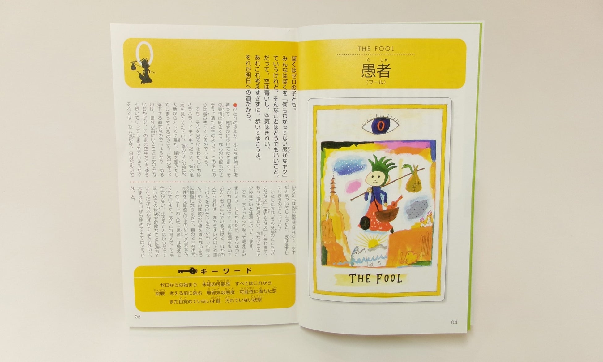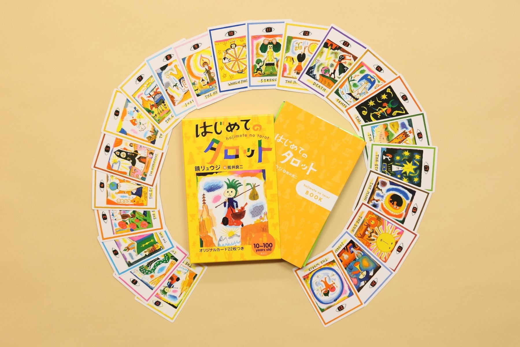 鏡リュウジさんのやさしく語りかけるような解説テキスト本(80ページ)と、絵本作家・荒井良二さんがイラストを手がけたタロットカード(22枚)がセットになっているので、子どもから大人まで、いつでもどこでも簡単に楽しむことができます。