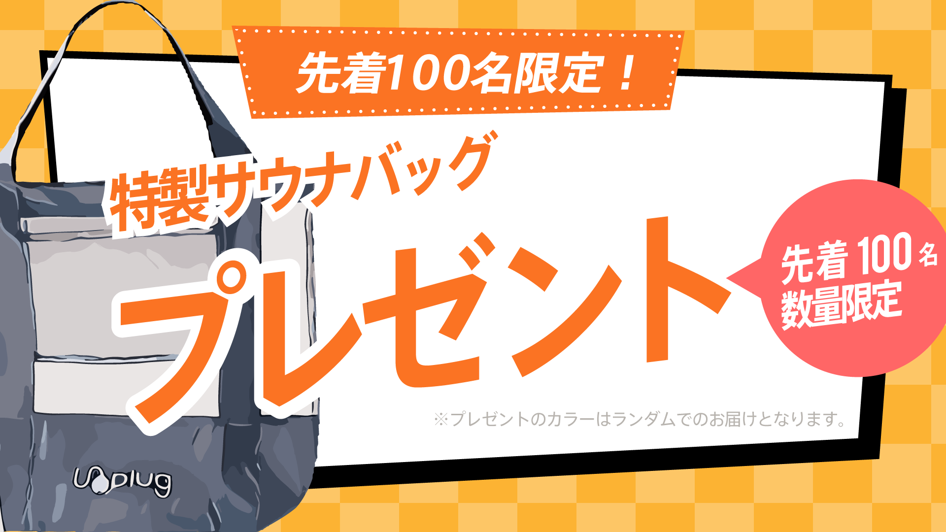 先着100名様にUnplug|アンプラグ"特製サウナバッグ"プレゼント、さらに期間限定で送料無料。