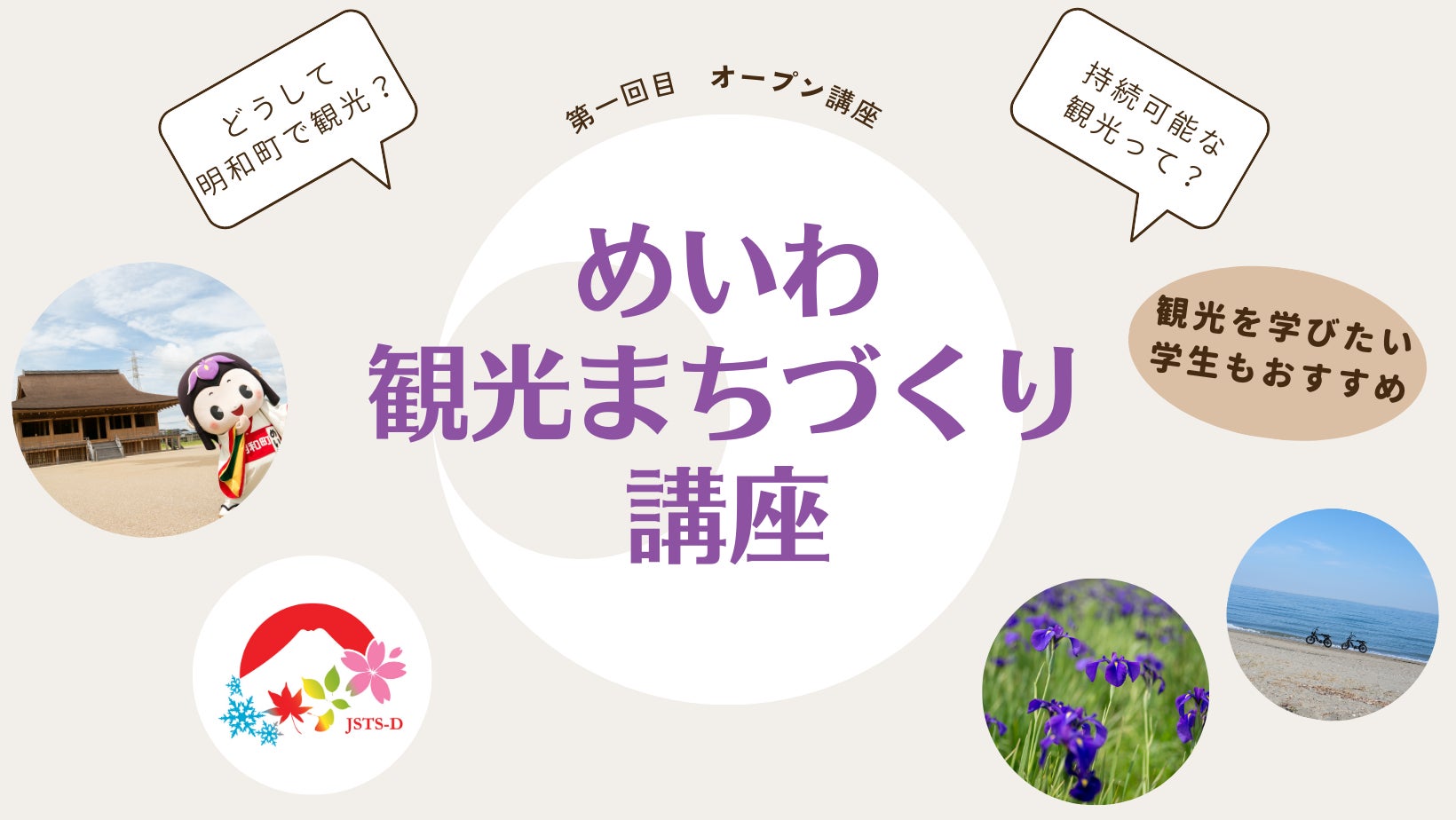 プロジェクトの取り組みの第一弾として、町内の事業者や住民、学生を対象に全2回のオープン講座「めいわ観光まちづく講座」を開催いたします。講座を経て、「めいわ観光まちづくり研究会」を設立し、めいわの持続可能な観光地域づくりを実現する「ヒト」の育成を目指します。