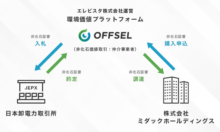 エレビスタ株式会社が運営する環境価値プラットフォーム「OFFSEL」を通じ、株式会社ミダックホールディングスの実質再エネ化をサポート