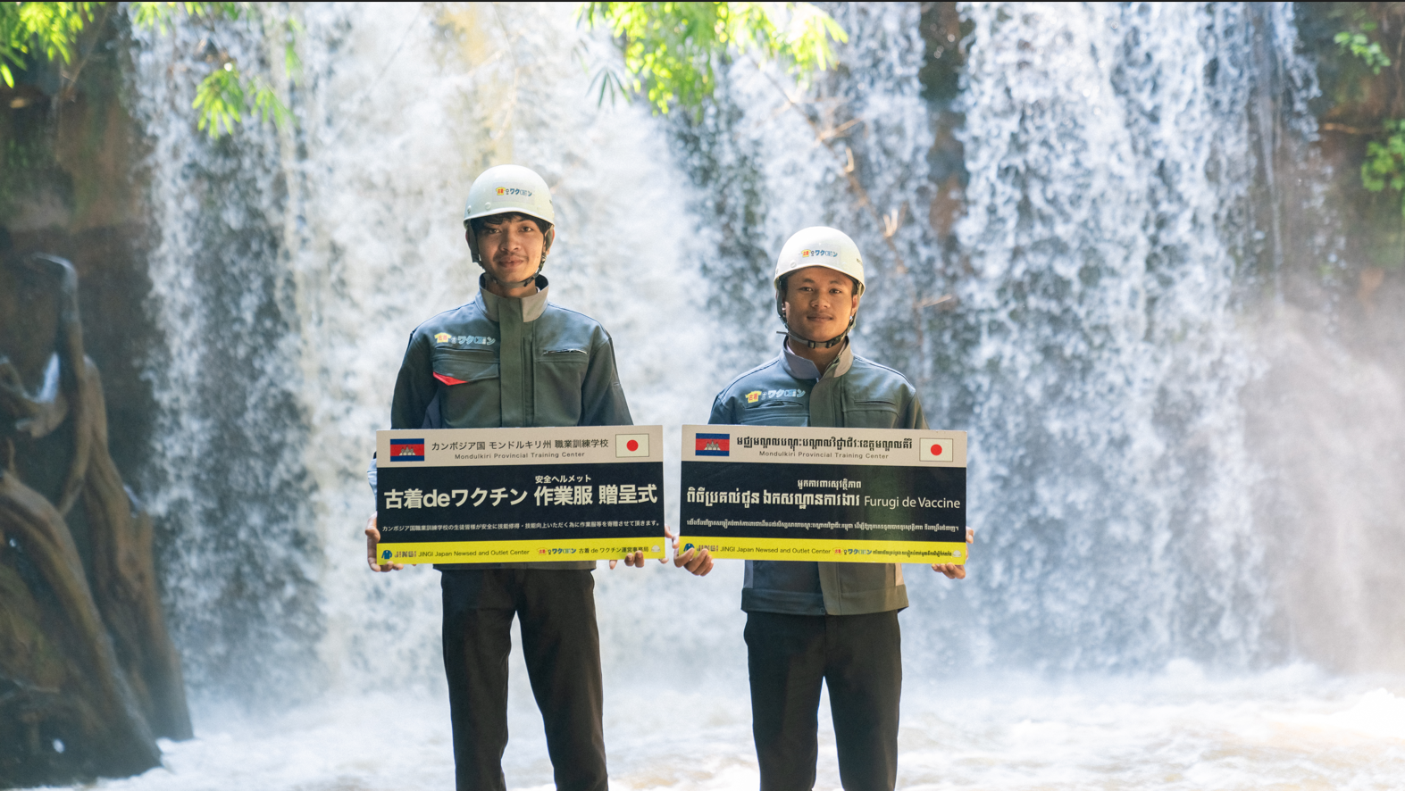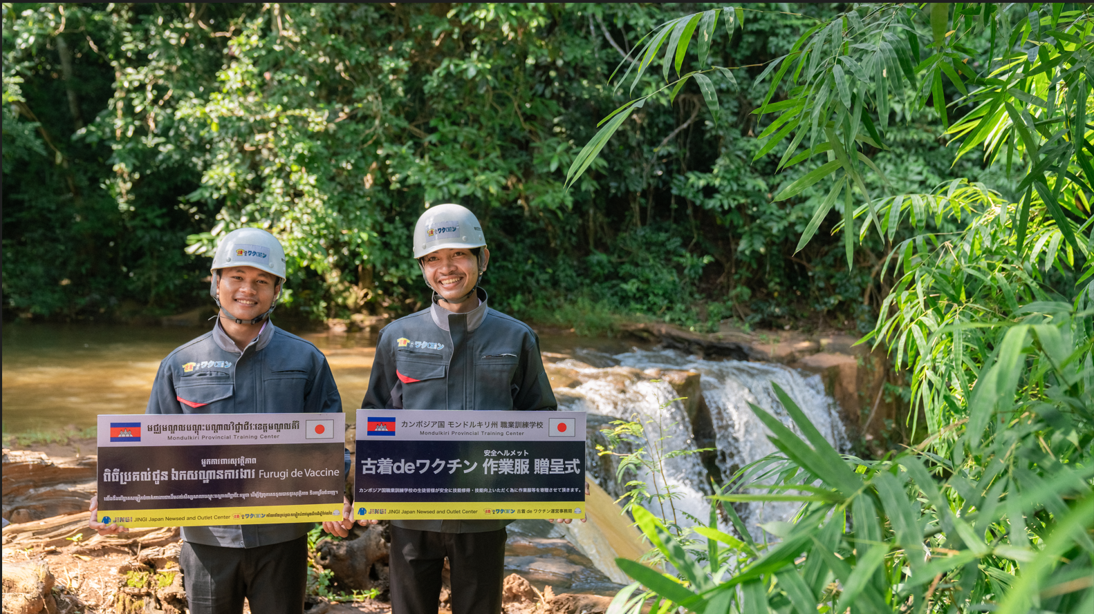 2022年10月1日より提供を開始した、企業用SDGsソリューションパッケージ「古着deワクチン まごころプロジェクト」の需要が高まり、中でも使わなくなった作業服の新たな有効活用の場という点で各企業が利用しています。同社は丈夫で高品質なつくりをした「日本企業の作業服」が必要とされる人々の下で活用されるべく、カンボジアジャングルでの現地住民による森林保全活動や観光客の安全を守る目的として現地で古着deワクチン Newsed作業服専門店 カンボジアジャングル店を運営しております。店舗運営はすべて現地村人へ委託し新たな雇用を創出、売上金の全額は、現地の環境整備及び村の学校での教育資金に充てられ、現地住民の生活向上としても活用されています。今回は職業訓練学校に通う生徒たちが安全に技能習得・技術向上できるよう、安全ヘルメット・作業服を贈呈しました。