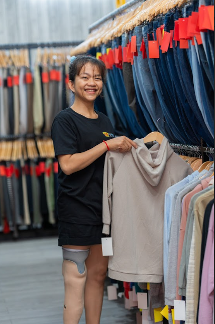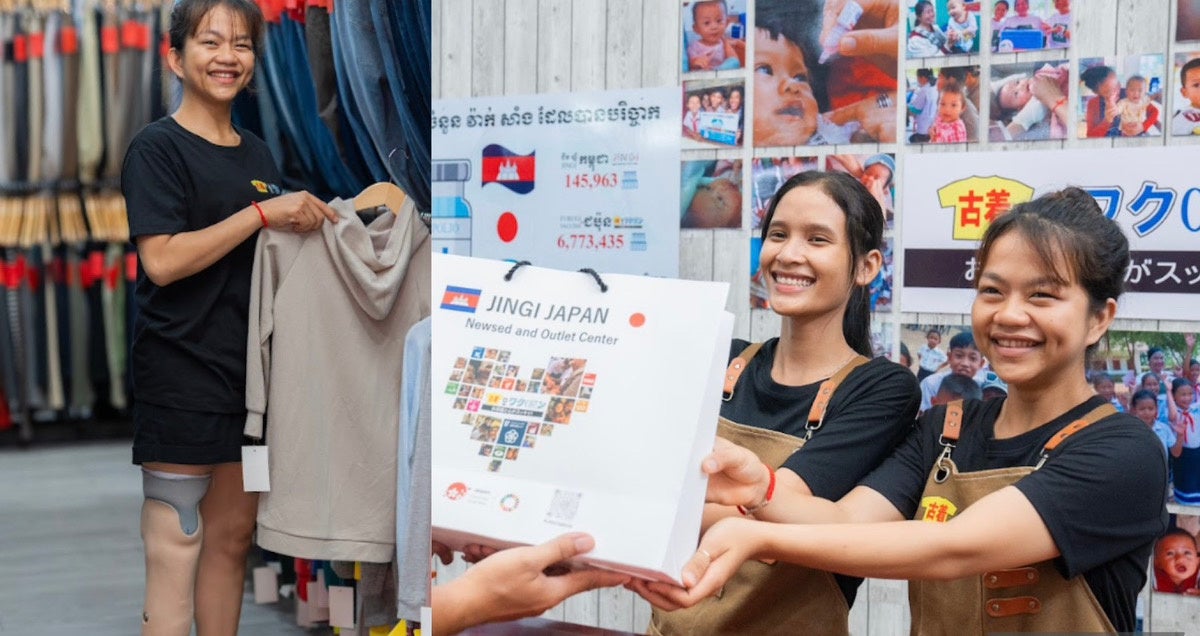 カンボジア古着deワクチン直営センターより3名のスタッフが参加しました。女性スタッフ:スレイマオは彼女自身障がいを持ち義足で生活をしながら働くスタッフです。直営センターのお店のコンセプトは「支援される側が支援する側にまわる」であり、この度の贈呈も自立支援の体現の一つとなりました。