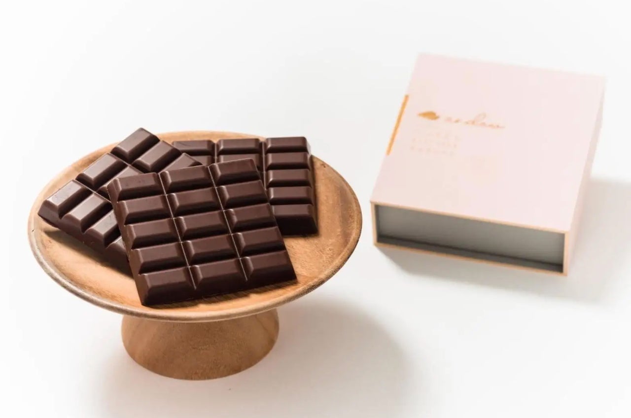 チョコレートの原料のカカオ豆に加え、アーモンド、きなこ、チアシード、ココナツ、ケシの実、抹茶、昆布などの栄養たっぷりの食材をふんだんに使用し、栄養価を最大まで高めた完全食チョコレート。