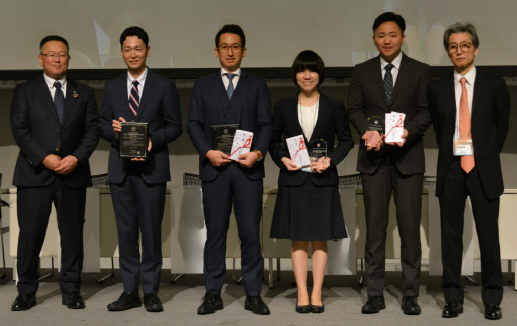 4名の受賞者には、特定非営利活動法人 日本歯周病学会理事長 吉成 伸夫 先生より「歯周組織再生医学優秀論文賞」および「歯周組織再生医学優秀発表賞」の賞状が授与されました。また、科研製薬 取締役研究開発本部長 綿貫 充より、副賞としてKAKEN Awardの盾またはトロフィーと賞金が贈られました。