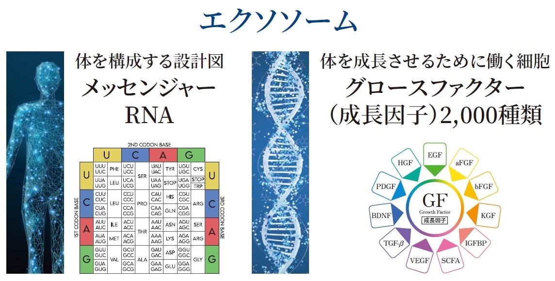 施術の説明:幹細胞培養上清療法とは、細胞が放出する成長因子を使って組織再生を図る治療法です。