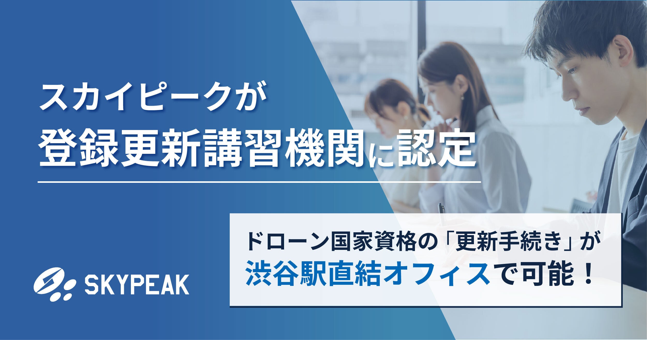 ドローン国家資格の「更新手続き」が渋谷駅直結オフィスで可能!スカイピークが登録更新講習機関に認定 11月4日受付開始