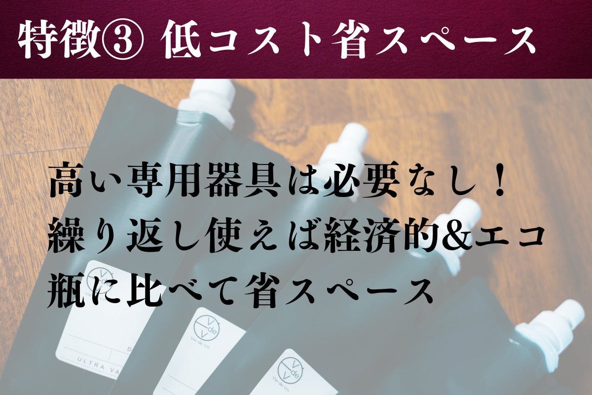 繰り返し利用すれば、低コストでワインを保存することが可能です。また保管のスペースにも困ることがありません。