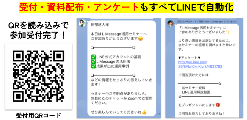 誰が何に参加したかを記録し、自動的に参加のお礼や資料、特典の配布もできます。