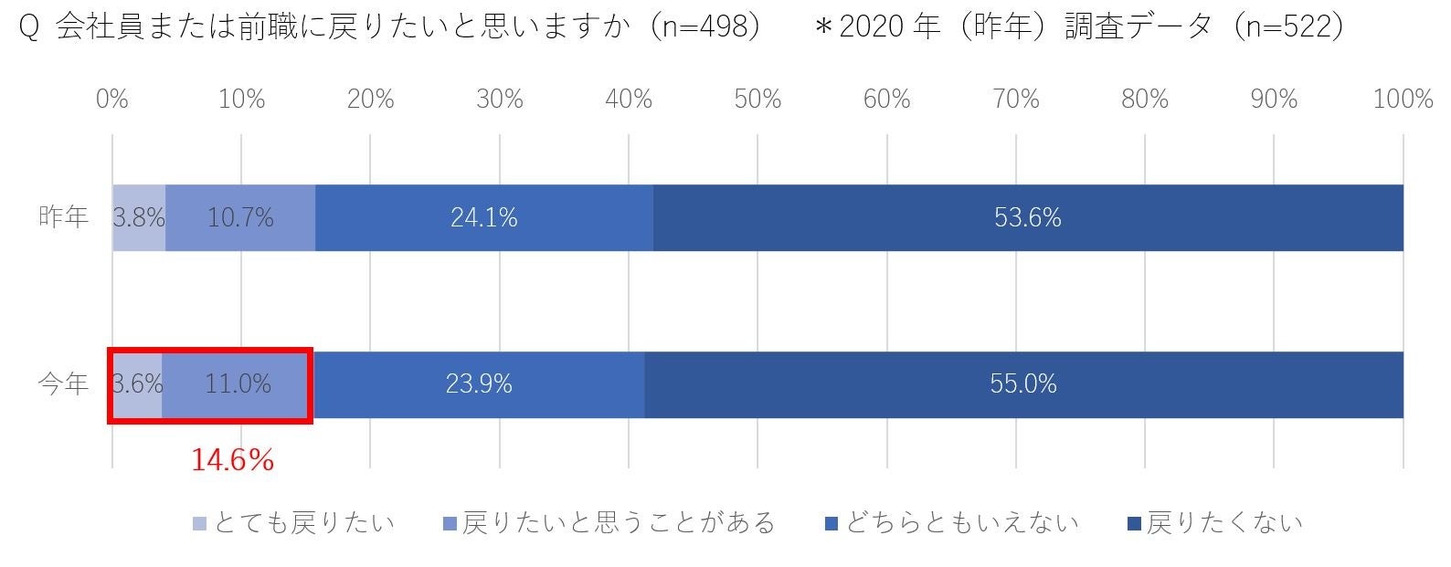 ・会社員に戻りたい経営者は1割(14.6%)どまり(昨年比-0.1%)