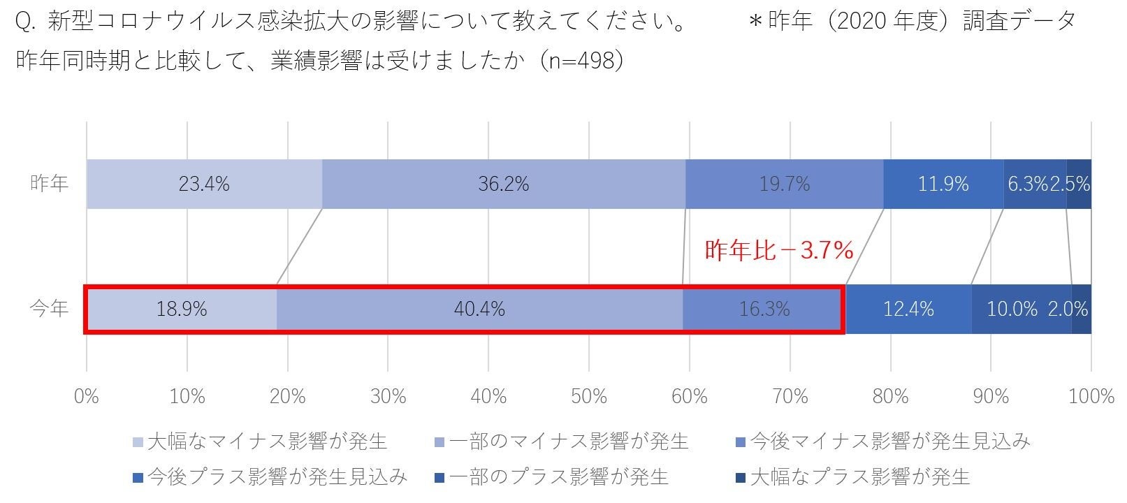大幅なマイナス影響では18.9%となり、昨年比-4.5%と、より回復が見える結果に。