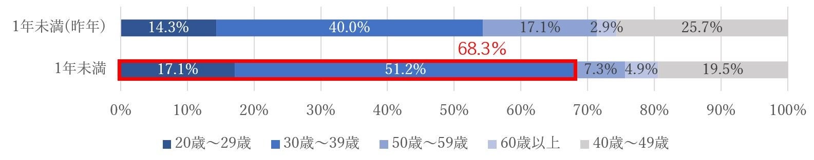 ・独立1年未満のウィズコロナ独立層は、30代が5割と最多で40代、20代が続く