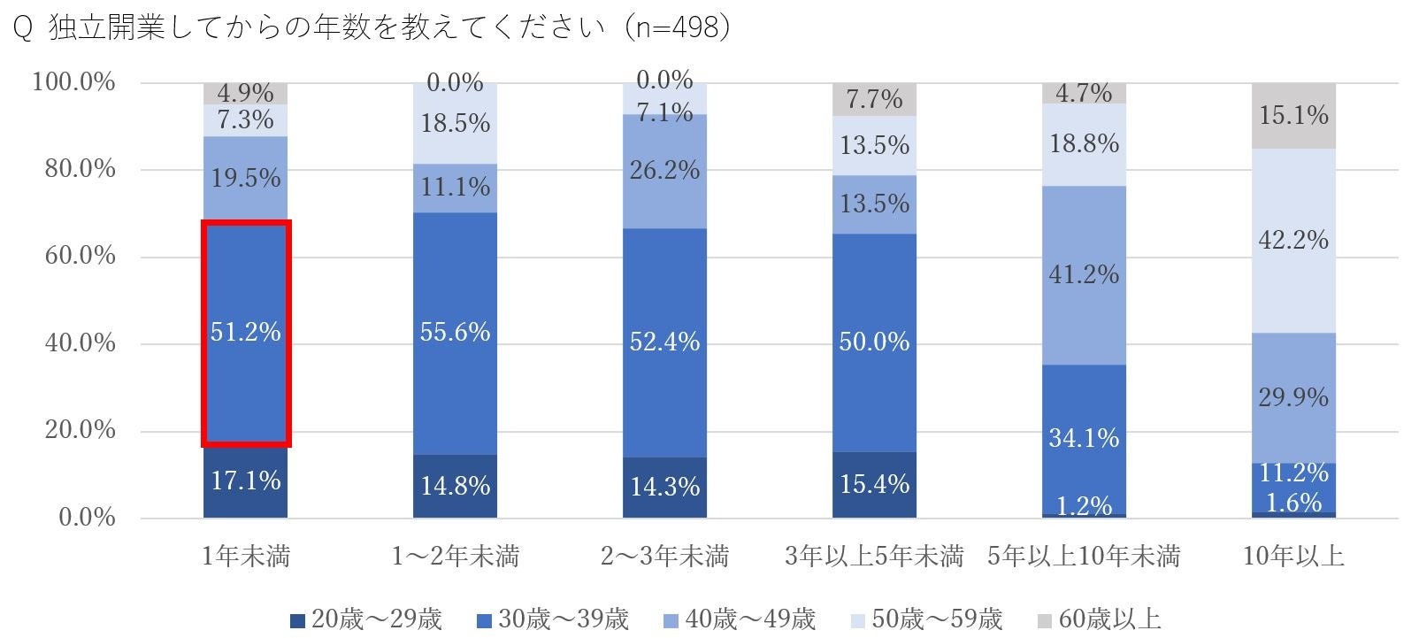 ・最もコロナで影響を受けているのは「独立2~3年未満」