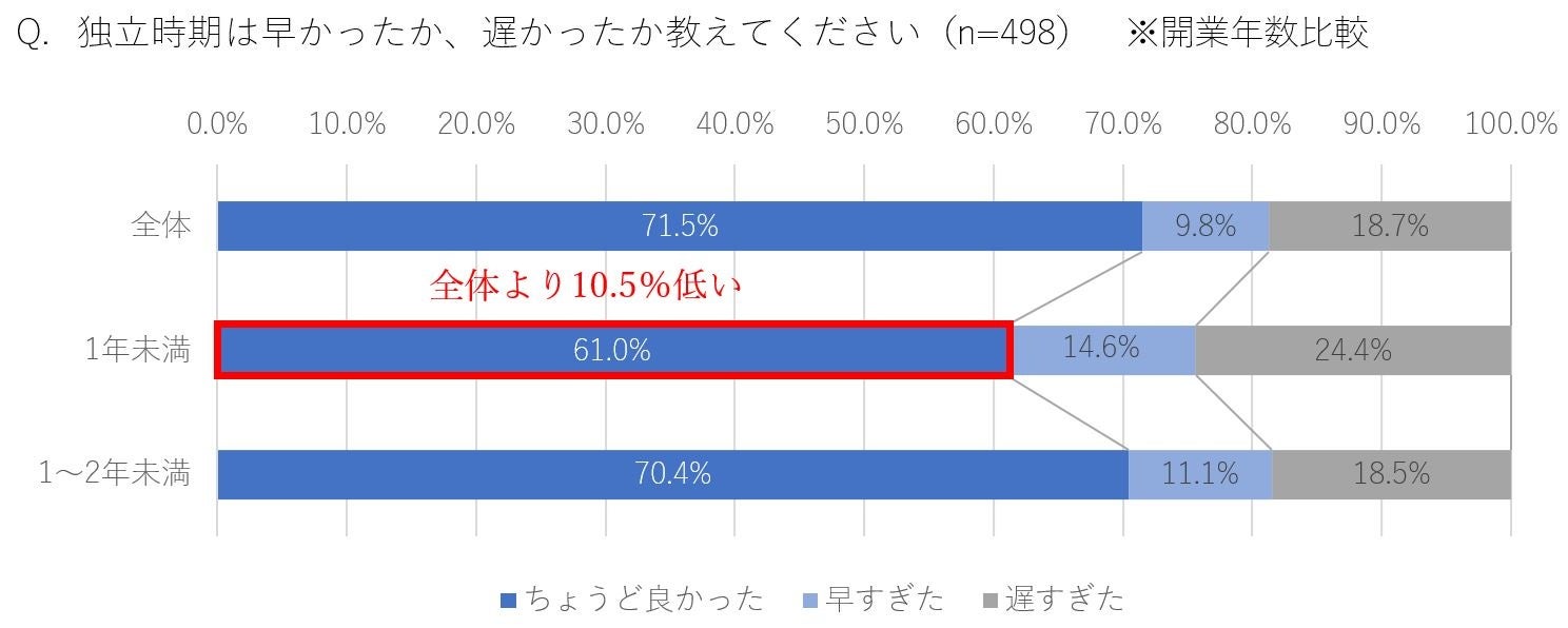 ・独立時期は「ちょうど良かった」が71.5%、時期については後悔がない決断をしている層が増加