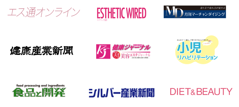 朝日広告社/アサヒグループ食品/アドバンストメディカルケア/アピポルファーマジャパン/アンファー/伊藤園/ウーマンズ/エイチタス/AMED→WaiSE (政策研究大学院大学)/エオストレ/encyclo/オプシス/Olive/かづきれいこ/カノアクルー/クライフ/グリーンハート/広葉樹合板/SAKITUE/サンライフ/SVAKOM INVESTMENT HONG KONG LIMITED/G-Place/シーボン/ジョコネ。/シンバイオシス・ソリューションズ/STI-IR/スポーツモチベーション/セーレン/ダイセル/ダイドードリンコ/タナック/つばめLabo/TL Genomics/ニチバン/美工/BeLiebe/ピルボックスジャパン/フジスコ/pluskampo/プラスコンフォート/ボディスプラウト/松吉医科器械/メニコン/menopeer/メリードゥ ビューティ プロダクツ/ユタックス/ricca/リリイーグル/RecoD/ロート製薬