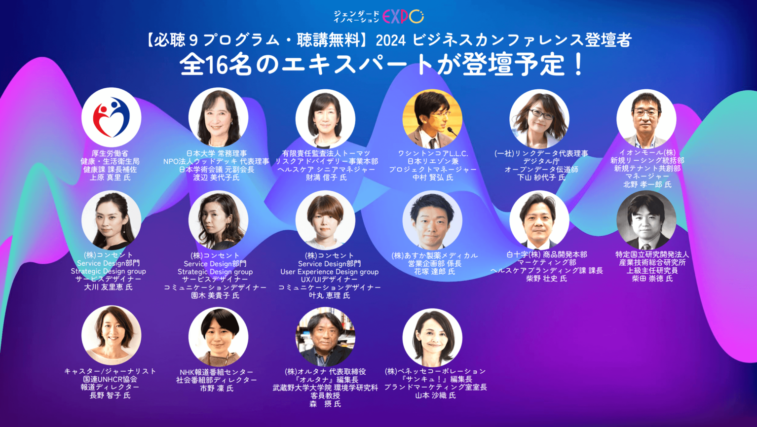 2024年2月開催をもって、健康博覧会と弊社ウーマンズのタイアップで開催してまいりました「ジェンダード・イノベーションEXPO」を終結いたします。2022年、2023年、そして2024年とご来場いただいた皆様、ご出展いただいた企業様、メディアパートナー様、ビジネスカンファレンスにご登壇いただいた皆様、関係各社様、誠にありがとうございました。ウーマンズ一同、心より御礼申し上げます。
