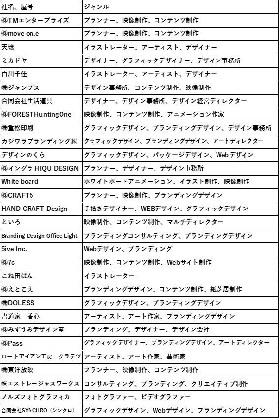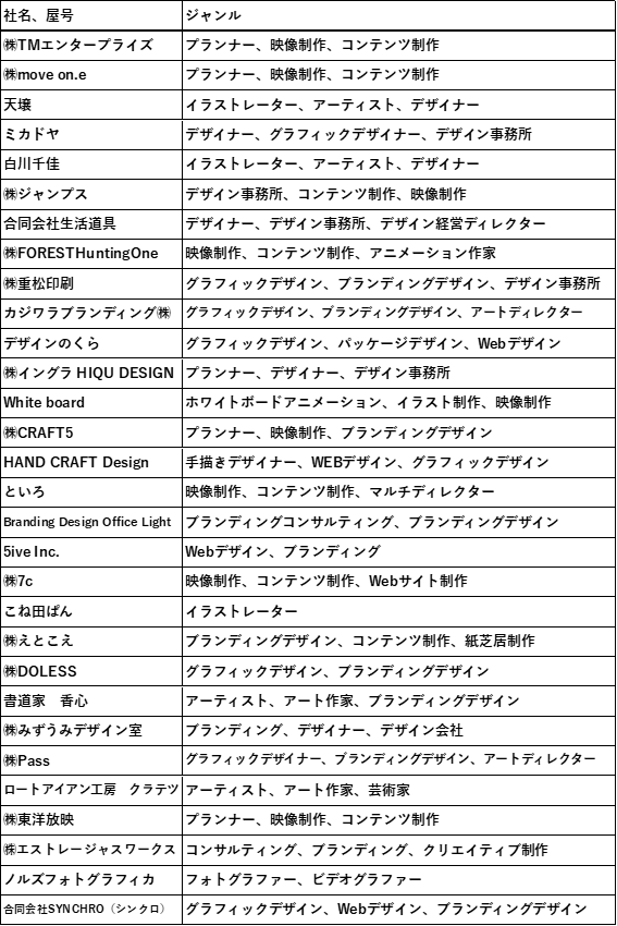 出展者 : グラフィックデザイナー、映像制作会社、アーティストなど30者(社)