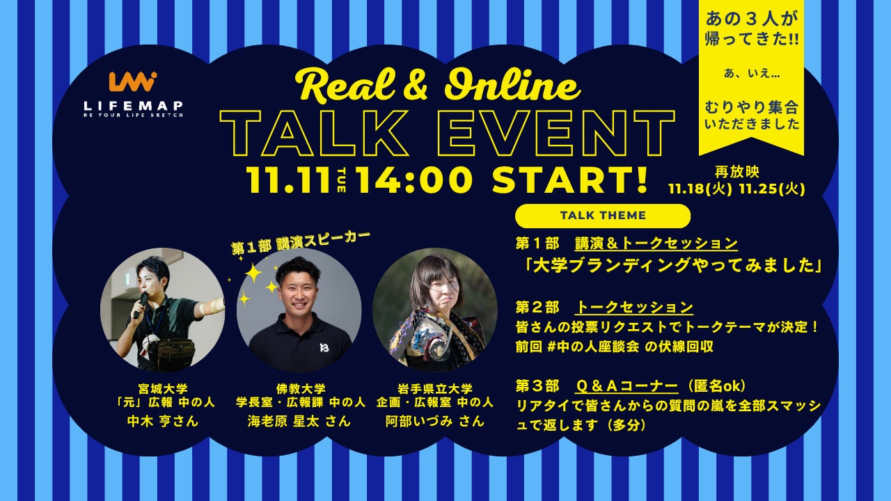 ”徹底的な高校生目線”で作る進学情報サイト「コレカラ進路.JP」の運営をはじめ、学生募集広報全般の支援を展開する株式会社ライフマップ(本社:東京都港区、代表取締役:石川太一郎)は、2025年11月11日(火)14:00〜17:00に、大学や専門学校など学校広報担当者を対象とした無料ウェビナー「大学ブランディングやってみました。〜“中の人系”3人が語る、大学広報の組織変革〜」を開催いたします。