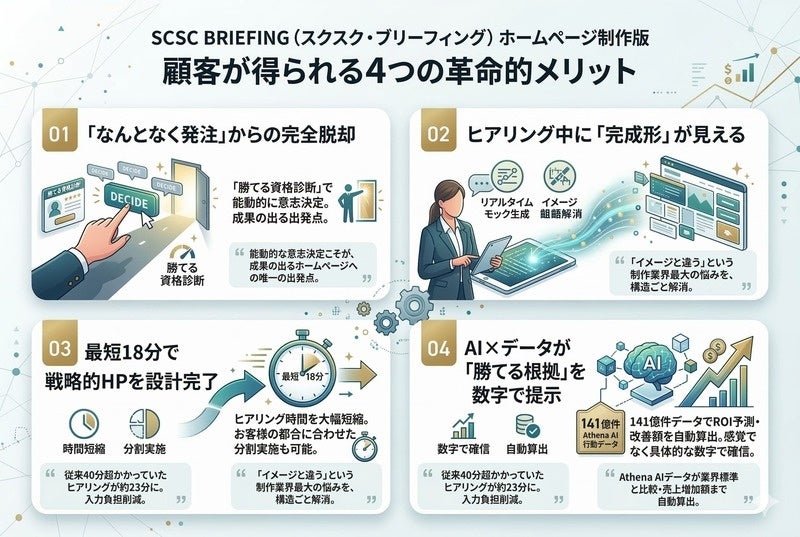 株式会社ガーディアン(代表取締役:青山裕一、所在地:東京都)は、ホームページ制作業界における構造的な課題を根本から解決するインタラクティブ型ヒアリングシステム「SCSC BRIEFING(スクスク・ブリーフィング)ホームページ制作版」を正式にリリースします。