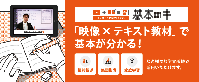 1。「専任講師による映像授業」+「専用のテキスト教材」→【基本のキ】&【基本のキ 思考力編】