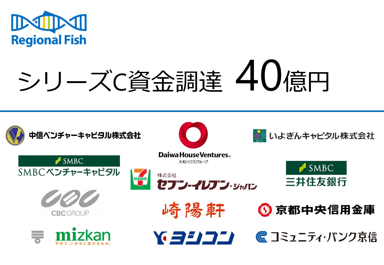 ゲノム編集技術をはじめとした品種改良技術×スマート養殖技術を活用したスタートアップであるリージョナルフィッシュ株式会社(本社:京都府京都市、代表取締役社長:梅川 忠典)は、シリーズCラウンドとして、既存株主である中信ベンチャーキャピタル、SMBCベンチャーキャピタル、CBCに加え、新規株主としてセブン-イレブン・ジャパン、大和ハウスベンチャーズ、Mizkan、崎陽軒、ヨシコン、いよぎんキャピタルを引受先とする第三者割当増資により、総額30.2億円の資金調達を実施しました。また、三井住友銀行、京都中央信用金庫、京都信用金庫からの融資枠として、総額10.5億円の資金調達も実施しております。これにより、シリーズCファイナンスにおける調達総額は40.7億円、累計資金調達額は67.1億円となりました。