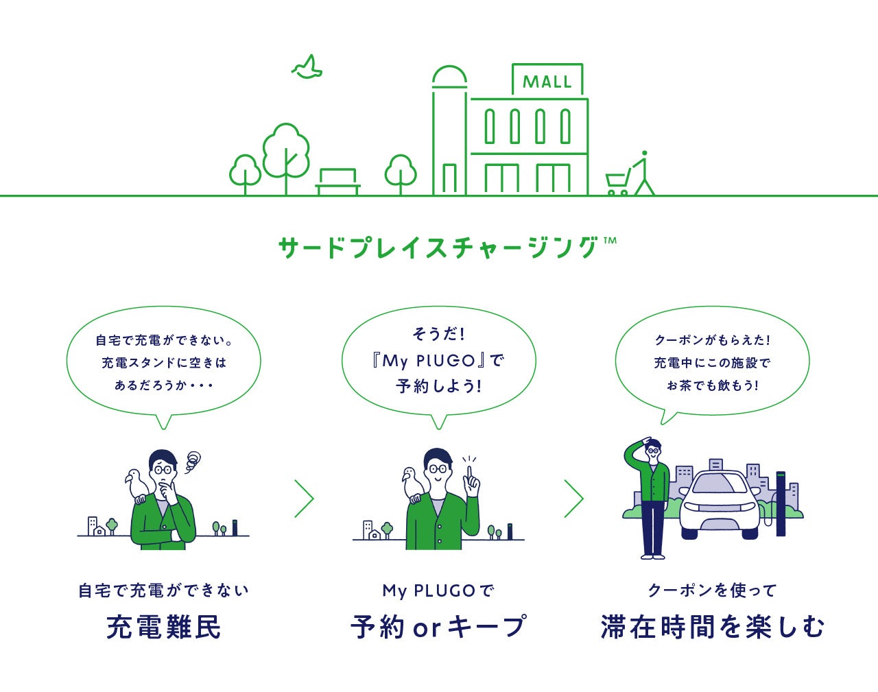 現在は次なるステップとして生活圏内の商業・公共施設で一定時間過ごす間に充電ができる「サードプレイスチャージング™」という新しい生活ルーティンとなるサービスを推進。