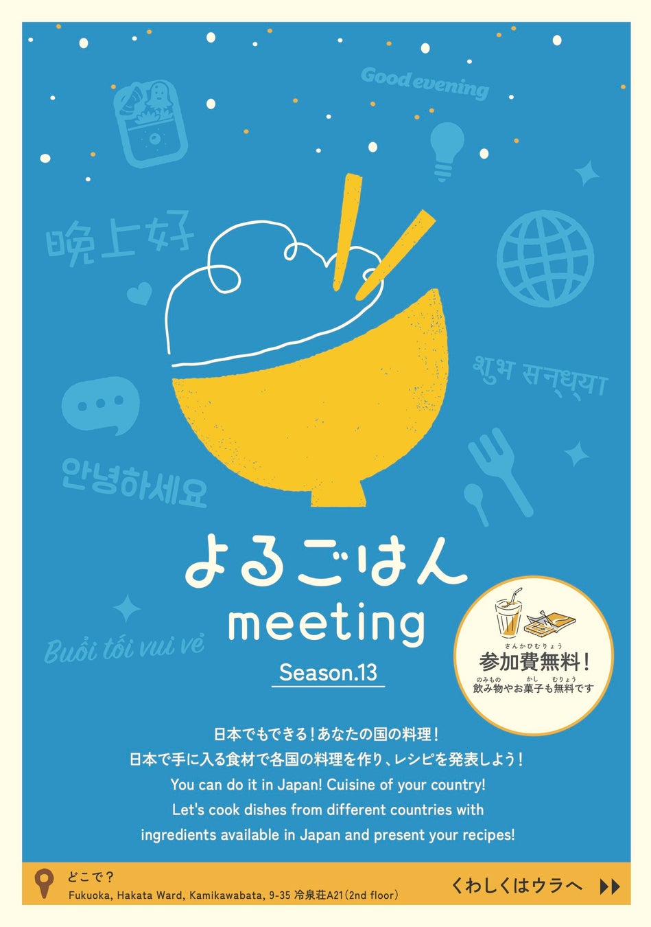 福岡在住の外国人のみなさんを募集中。毎週水曜日18:00から開催の「よるごはんmeeting」