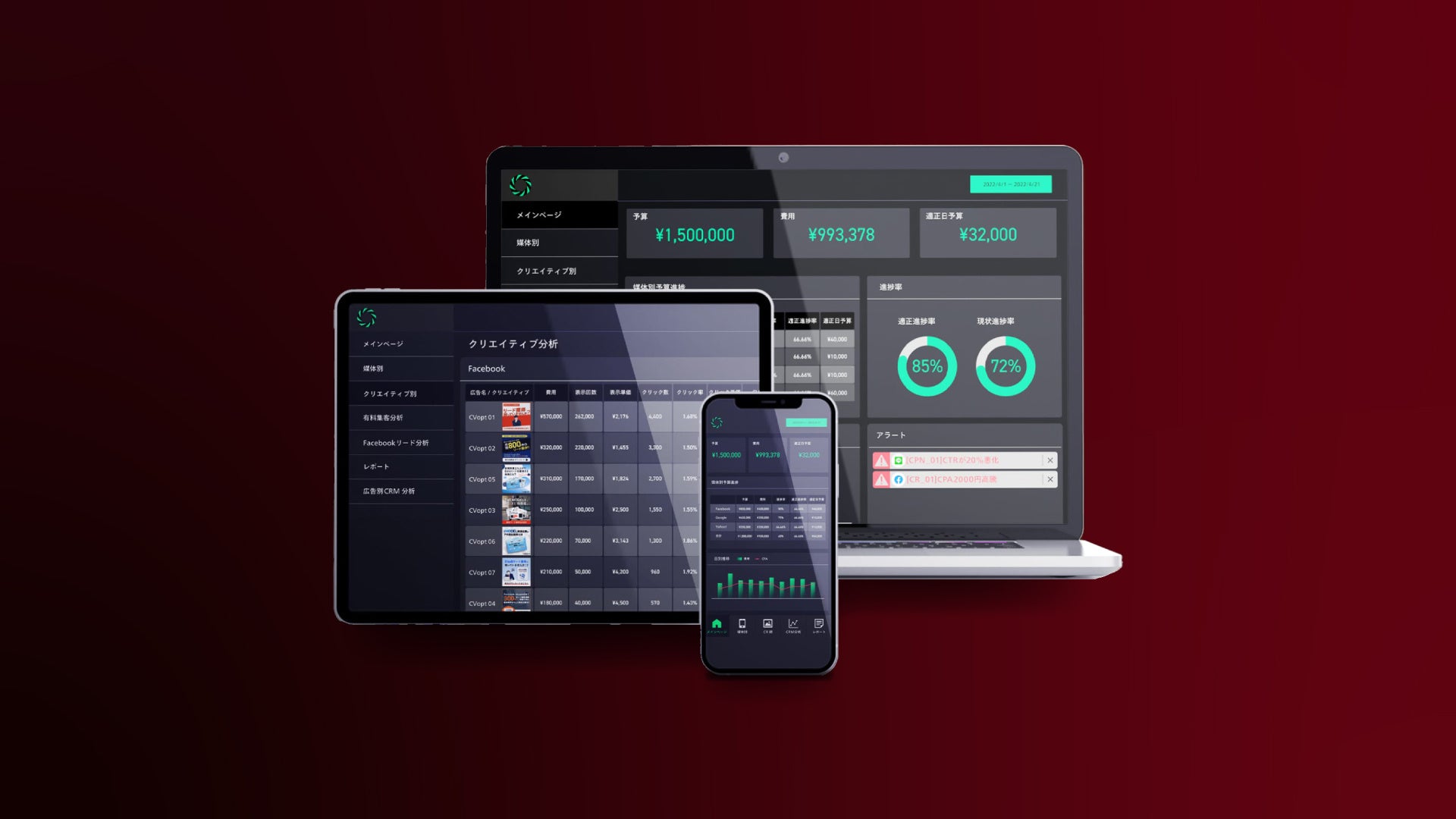 広告運用のためのデータと、アクセス解析、SFA/CRMデータを統合して、最終的な顧客価値(LTV)やCVの最適化を図るBIプラットフォームです。企業様が追い求めるべき真の指標にフォーカスし、カスタマイズしたツールを提供しています。