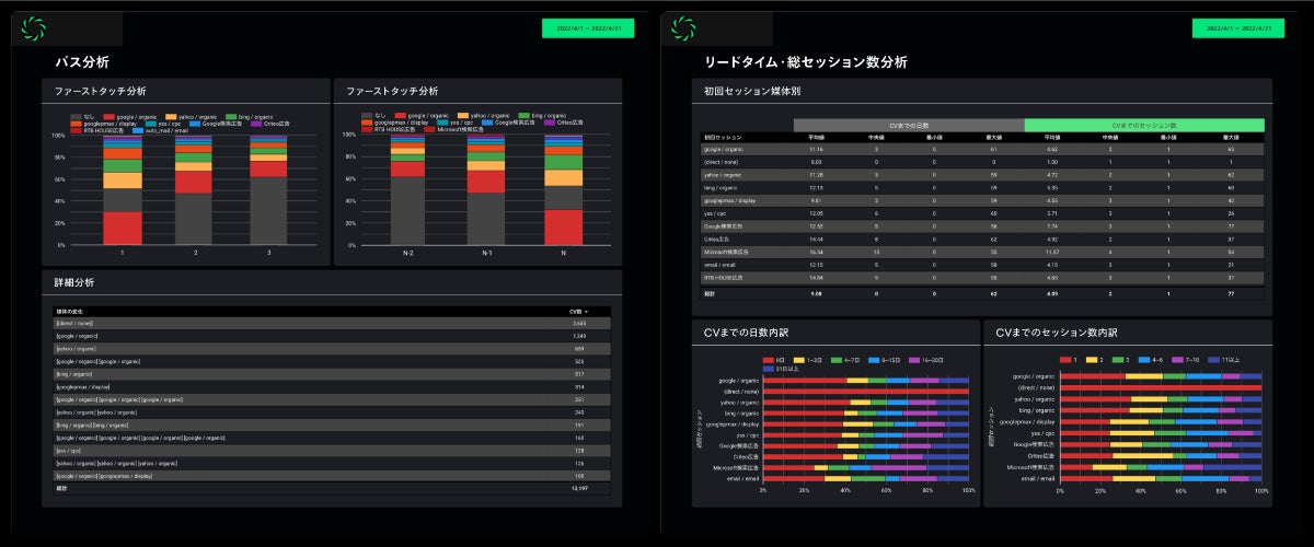 初回接触のメディア別で、CVまでのリードタイムや接触経路を詳細に分析
