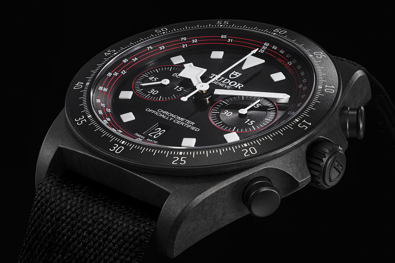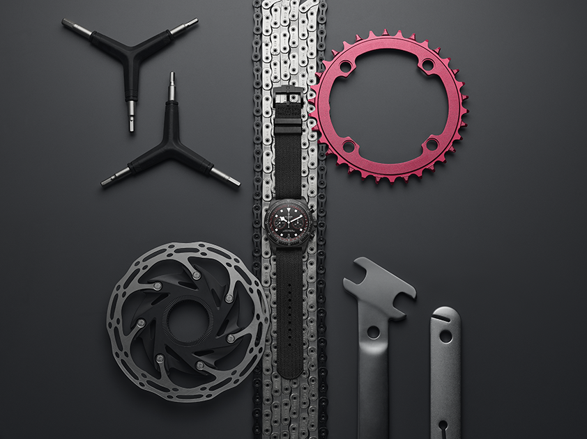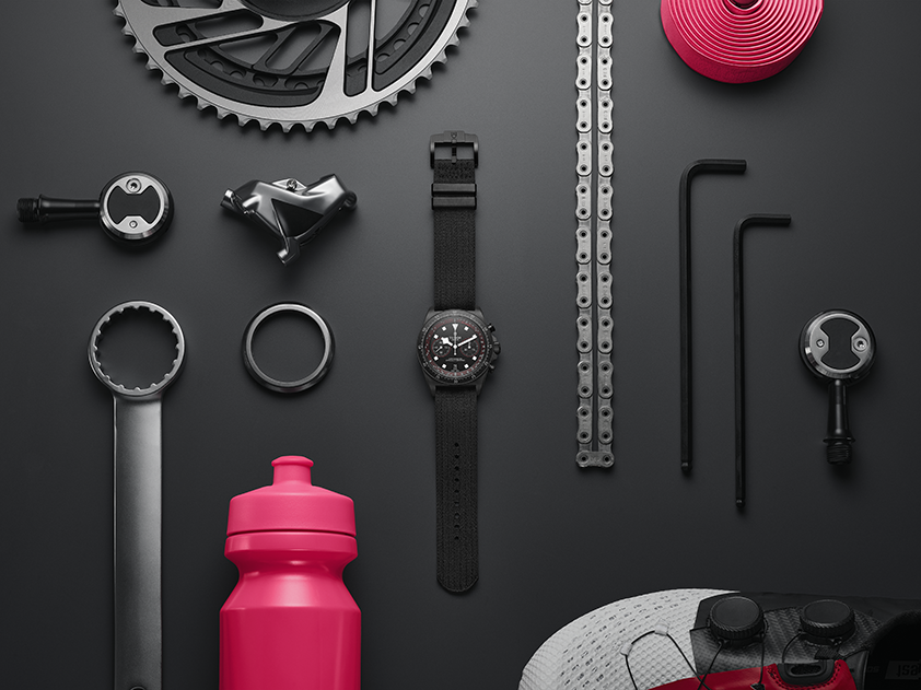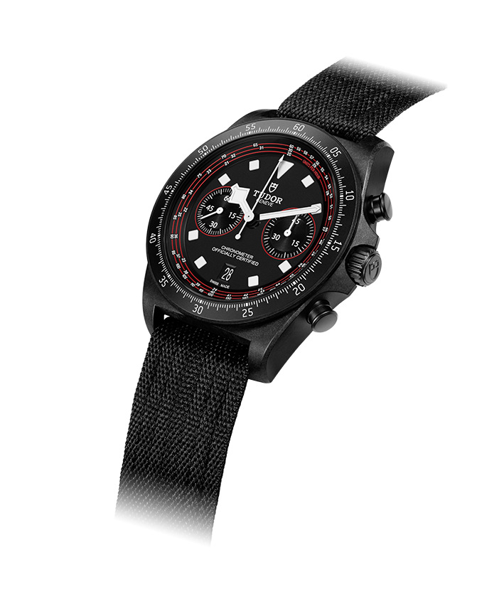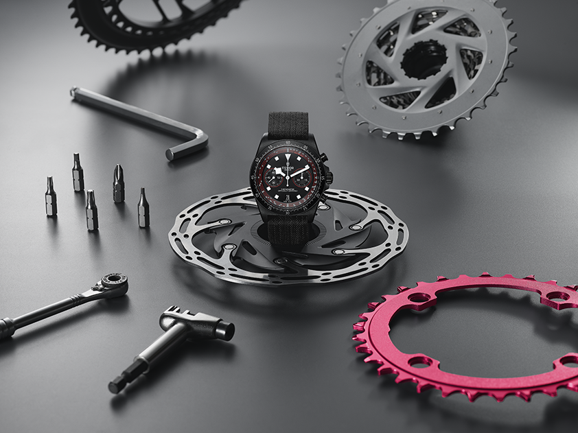 プロフェッショナル サイクリングは小心者では太刀打ちできない。ライダーの肉体とマインドは、ペダルをこぐたびに限界まで押し上げられ、危険が伴うスポーツであることは言うまでもない。プロフェッショナル サイクリングを念頭に置き設計されたこの時計は、同スポーツの極限の要求に応えるとともに、ライダーにとって使いやすいものでなくてはならない。速いバイクがカーボンファイバーで作られることは知られているが、大胆なライダーたちに向けたチューダーの新しいクロノグラフにもカーボンコンポジットを採用した。サイクリング中の予測不能な状況にも確実に対峙できるよう、ステンレススチールとチタニウムを取り入れることで、時計に必要な堅牢性を維持している。
