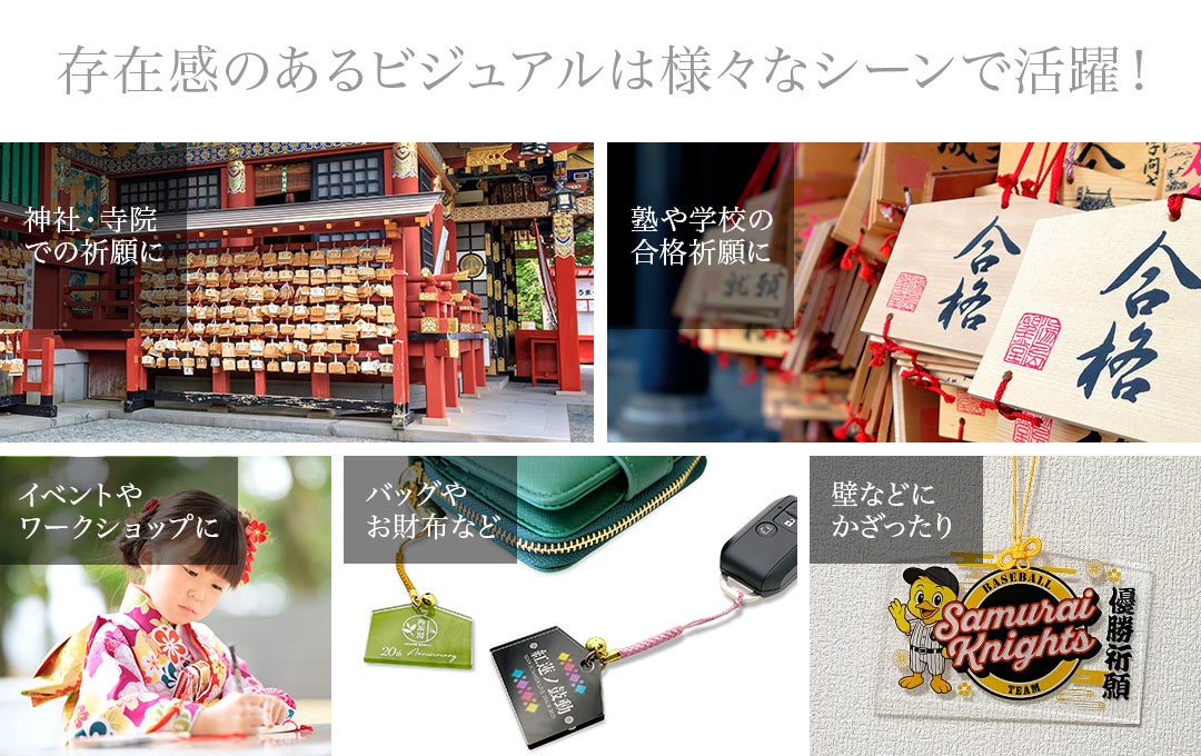 透明感が魅力!SNS映えする「オリジナル アクリル絵馬」は、多彩なシーンで活躍。