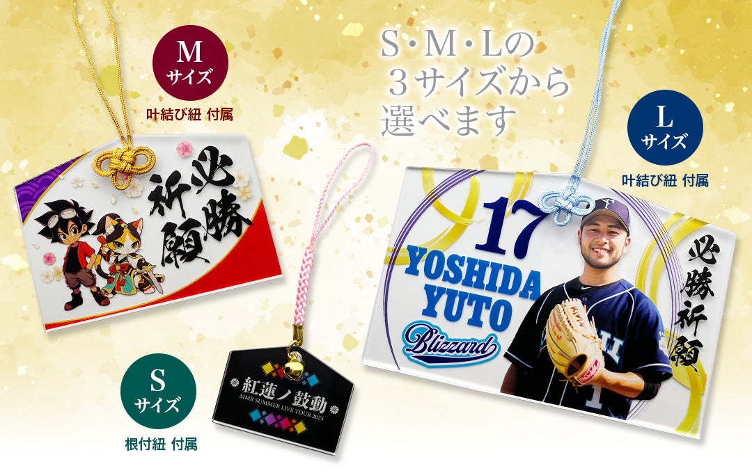 ◆ アクリル絵馬は用途に合わせてS・M・Lの3サイズからお選びいただけます