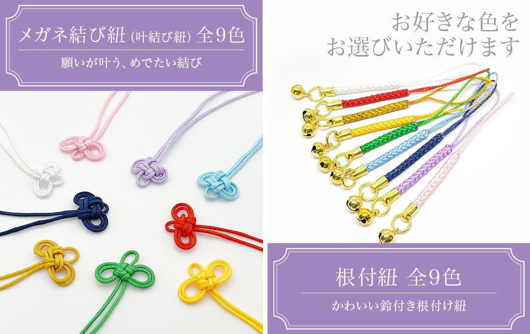 ◆付属する根付紐やメガネ結び紐(叶結び紐)は全9色からお選びいただけます