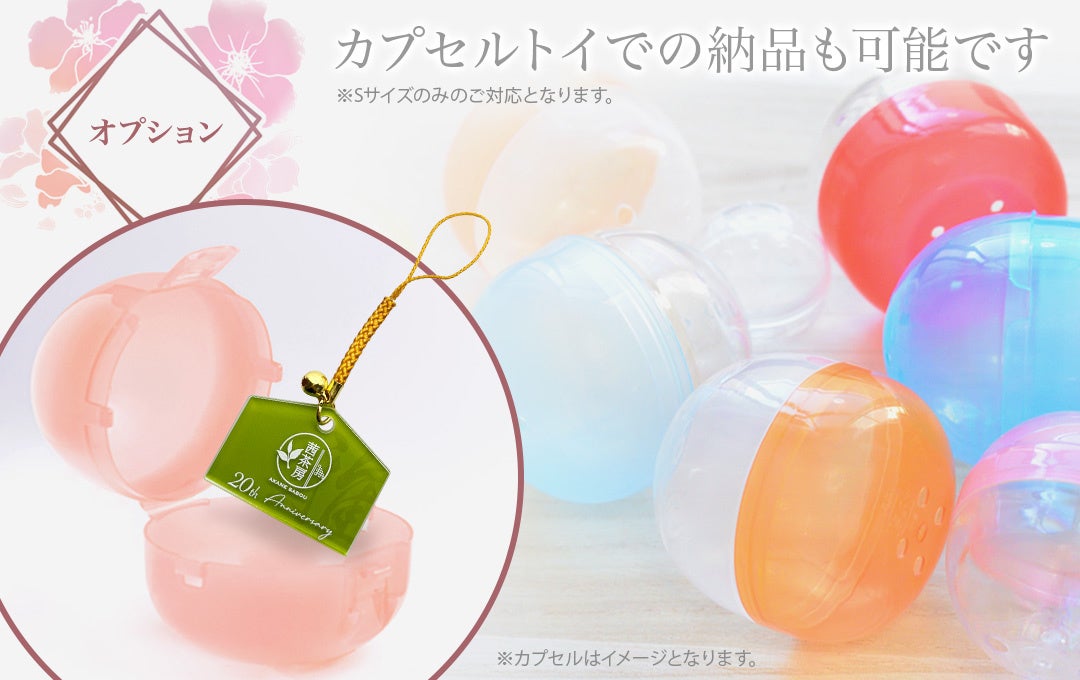 Sサイズのアクリル絵馬はカプセルトイ納品が可能です。