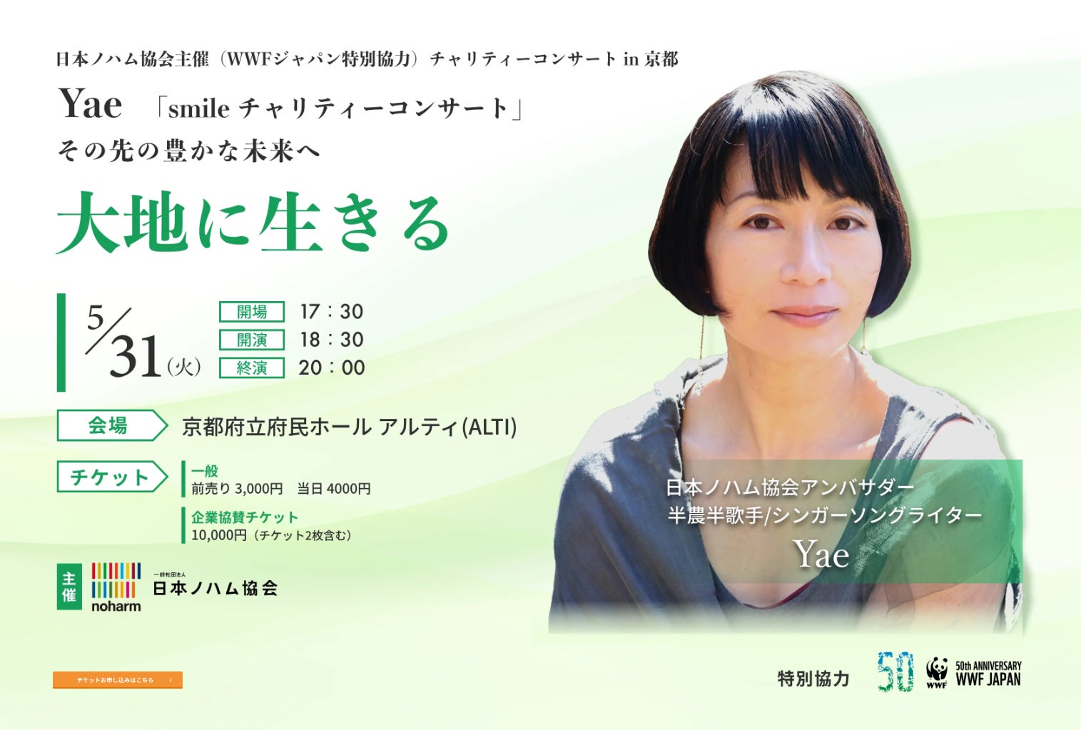日本ノハム協会:主催/WWFジャパン:特別協力、5月31日 Yae「smile チャリティコンサート」in京都を開催