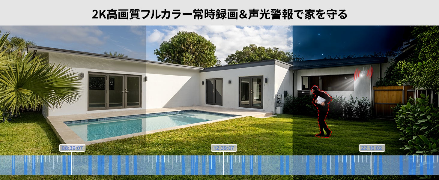 日中、仕事先ではリモートでカメラを確認することにより、2K高画質でリアルタイムに誰もいない家を把握し、不安を和らげることができます。 夜間、自宅で休憩中に、カメラが不審者の動きを検知するとすぐに声光アラームを作動させ、不審者を威嚇することで、深夜の安眠をしっかりと守ります。
