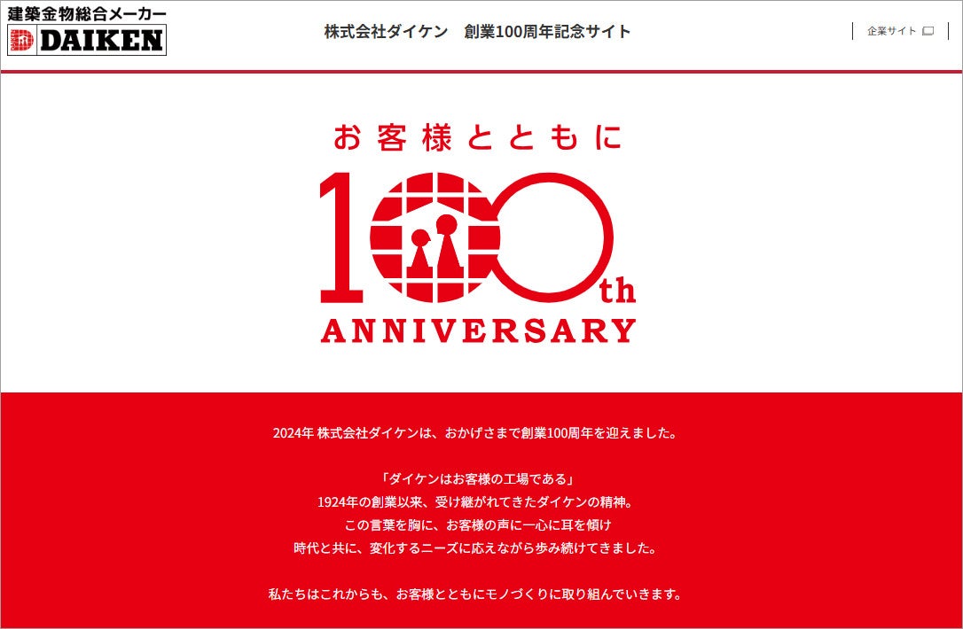 「お客様とともに100周年」 株式会社ダイケン 創業100周年記念サイトを公開