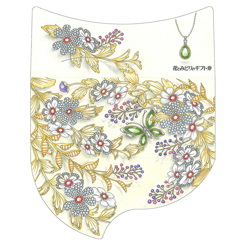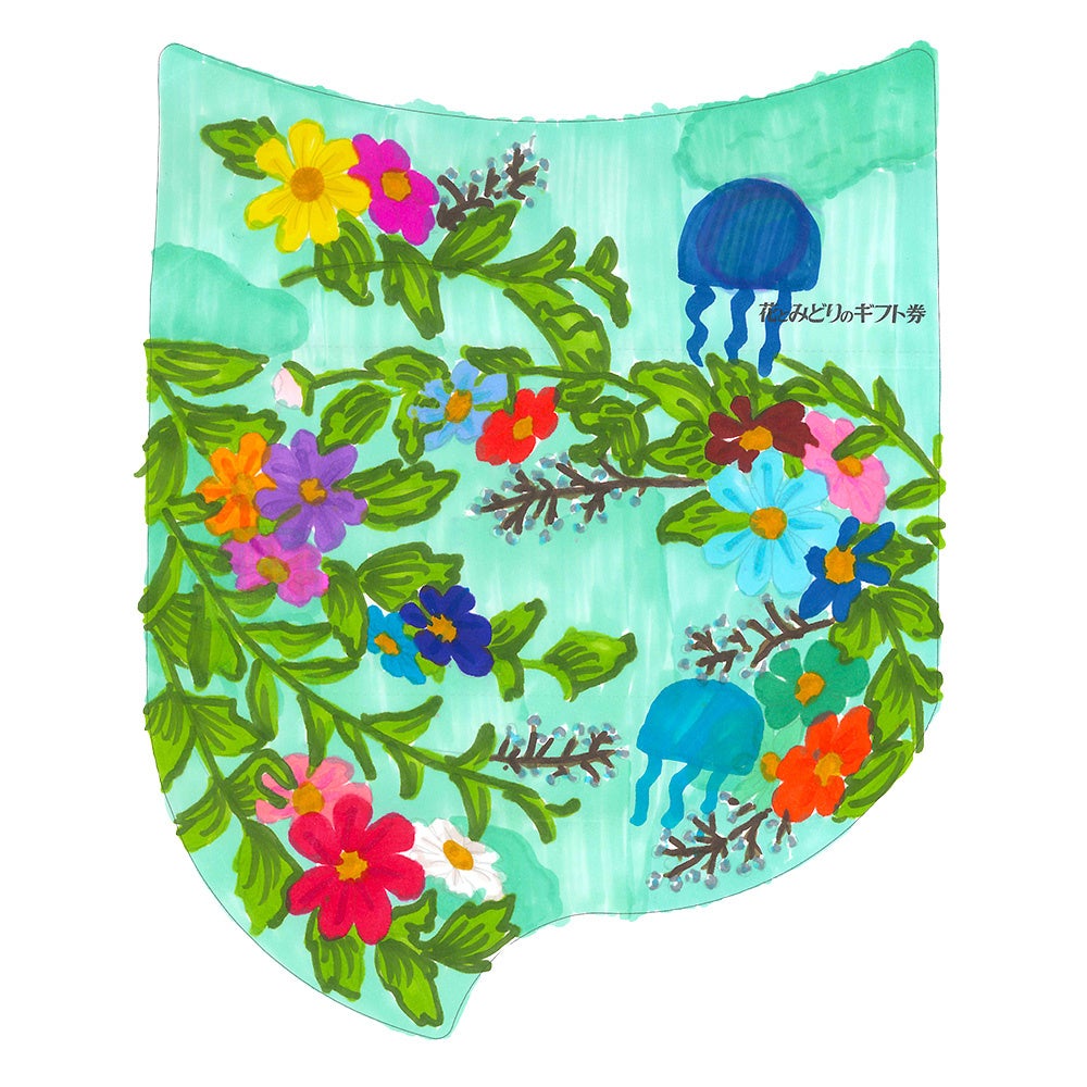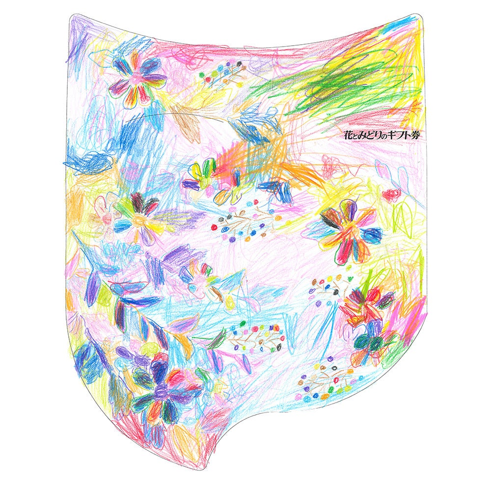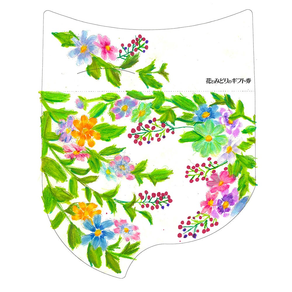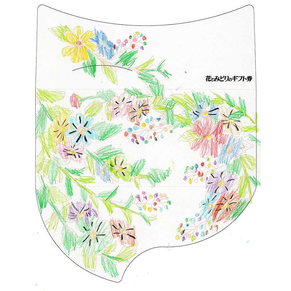 花とみどりのギフト券オリジナル封筒(花柄封筒)の全面に、お好きな画材(色鉛筆、ペンなど)で自由に色を塗ってください