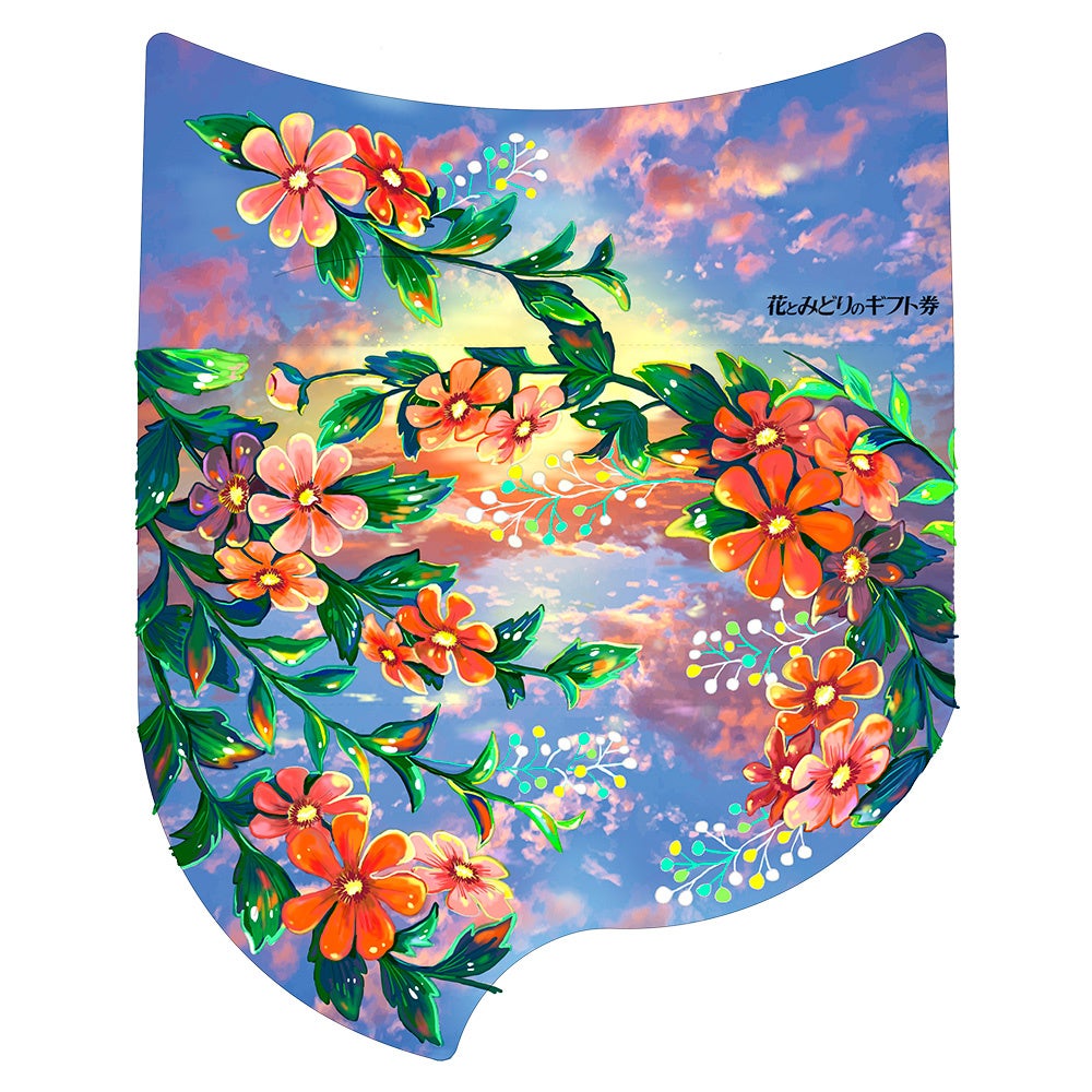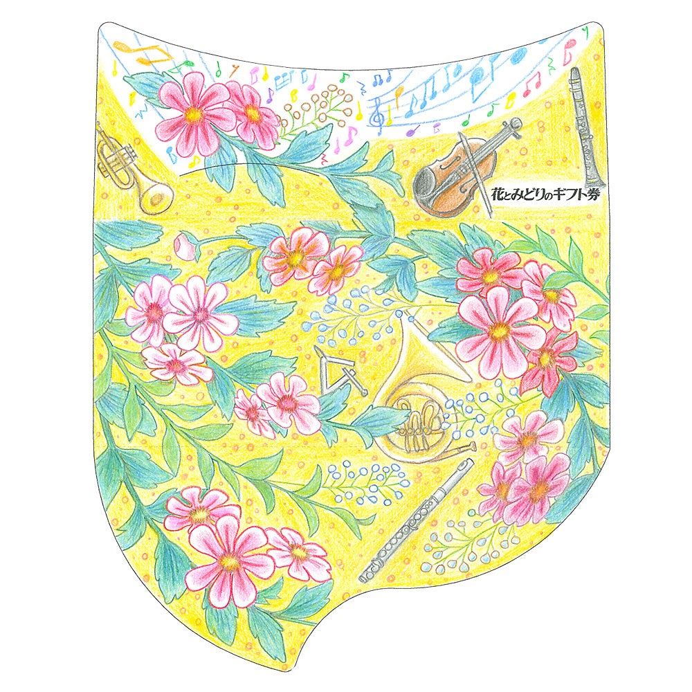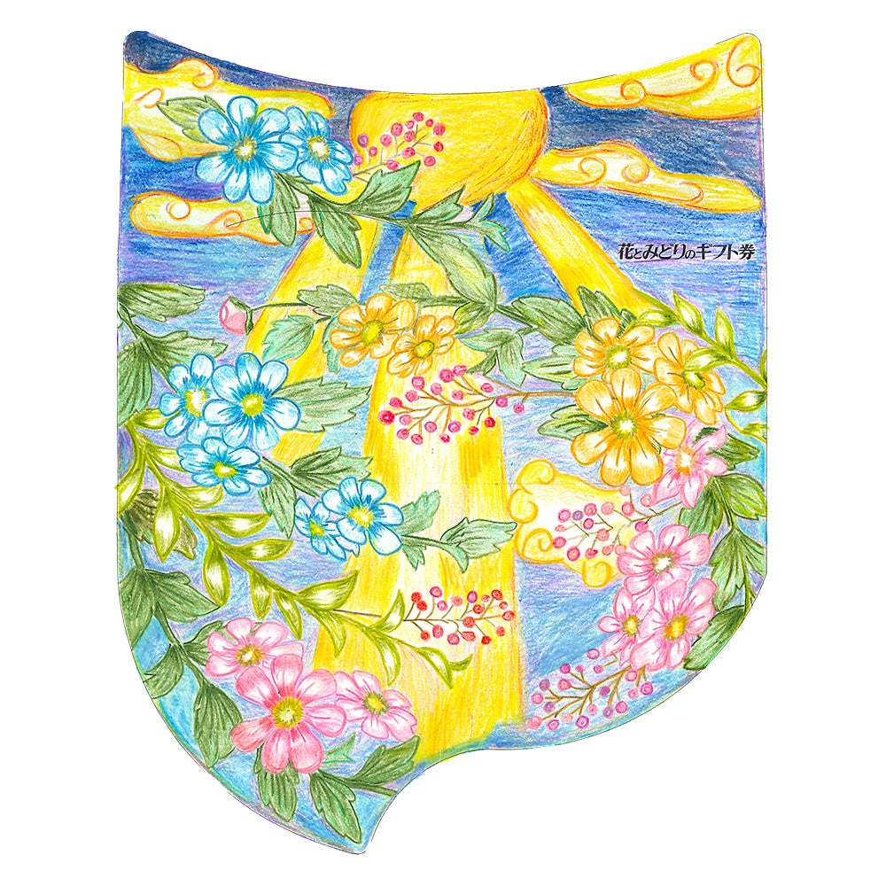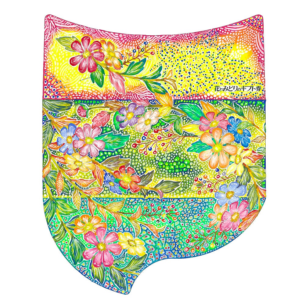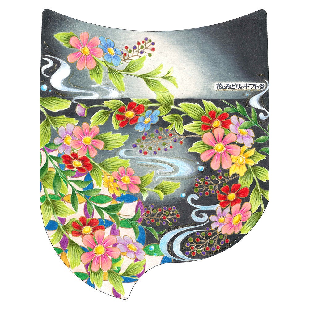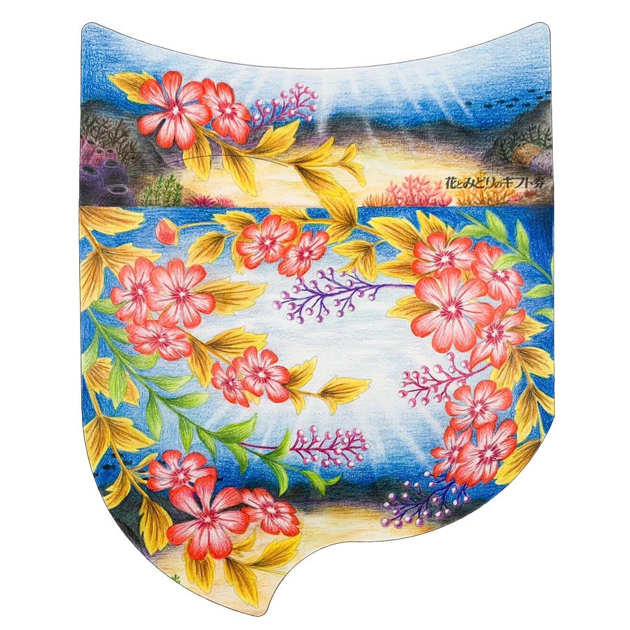 花とみどりのギフト券オリジナル封筒(花柄封筒)の全面に、お好きな画材(色鉛筆、ペンなど)で自由に色を塗ってください