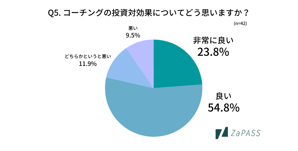 コーチング利用経験者の約8割弱が、投資対効果は「良い」と回答